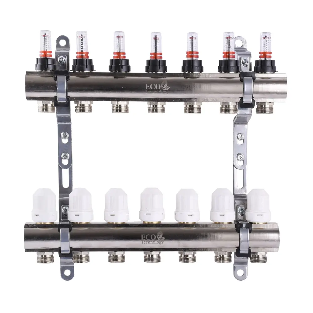 Колектор з вимірювачем витрат, регуляторами та кріпленням ECO 001D 1"x7