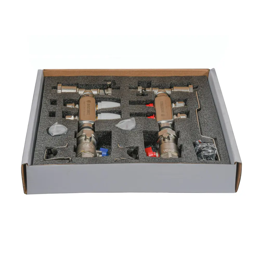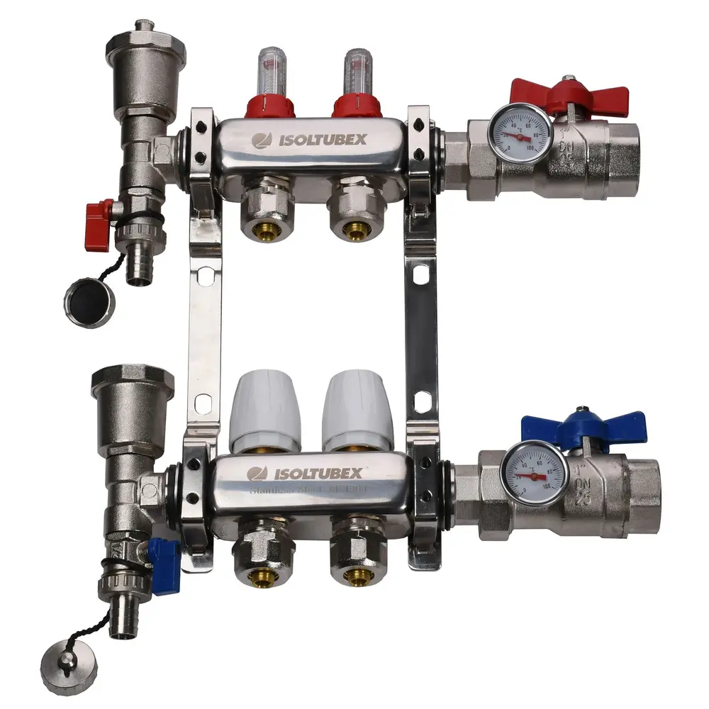 Матеріал колектора нержавіюча сталь, арматури і фітингів - латунь CW617N, ущільнювачами та золотникових прокладок - EPDM. У комплект входять кріплення.