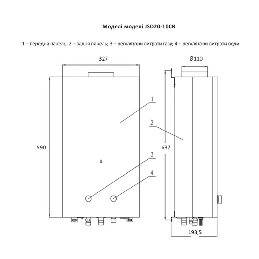 Газовий водонагрівач, батарейки, набір кріплення, інструкція, гарантійний талон