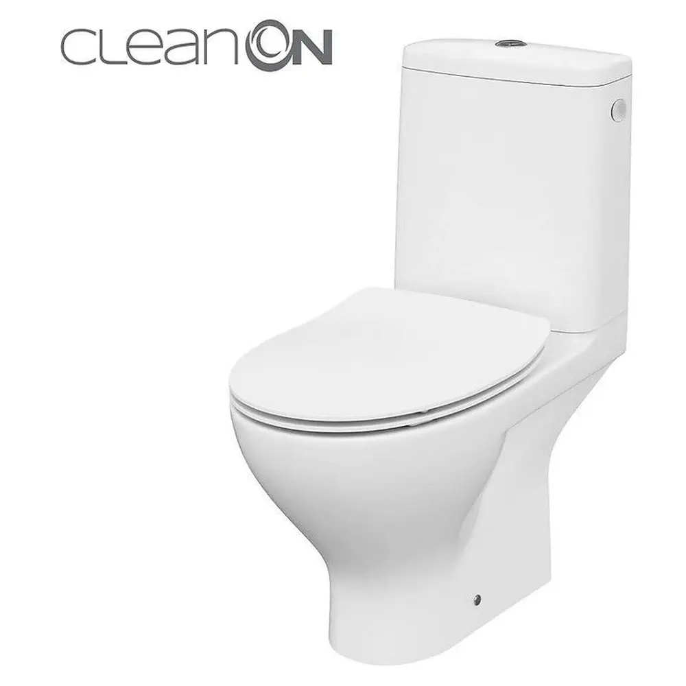 Компактный округлый унитаз MODUO CLEAN ON 010 оборудован экономичной системой смыва 3/5 л, которая позволяет контролировать степень потребления воды. Компакт имеет горизонтальный отток и вход воды снизу бака. В набор также входит антибактериальная крышка из дюропласта SLIM.