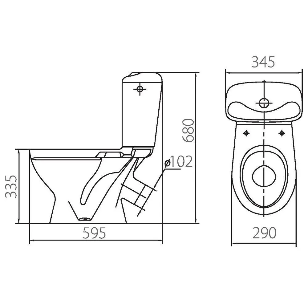 бачок класичного типу, в комплекті: біле поліпропіленове сидіння, кріплення.