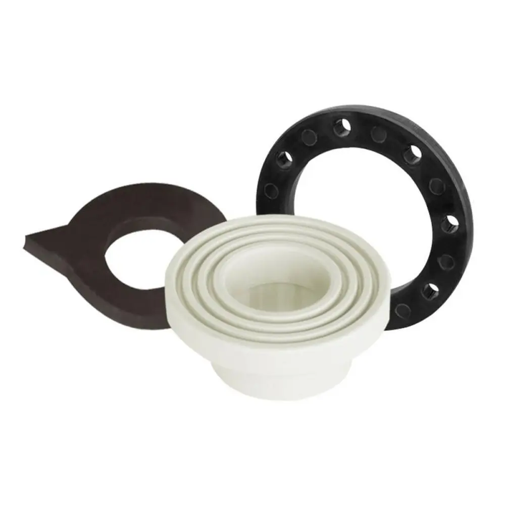 Комплект фланцевого з‘єднання Blue Ocean 125 складається з трьох елементів: втулки, фланця і силіконової прокладки. Втулка виконана з поліпропілену в класичному білому кольорі з буртом, в який впирається фланець. Фланець виконаний зі сталі з покриттям Fiber-G і чотирма отворами для з‘єднання. Він надягаэться на втулку з тильного боку, після чого втулку приварюють до труби або запірної арматури. Таке з‘єднання гарантує герметичність стику та довговічність магістрального трубопроводу.