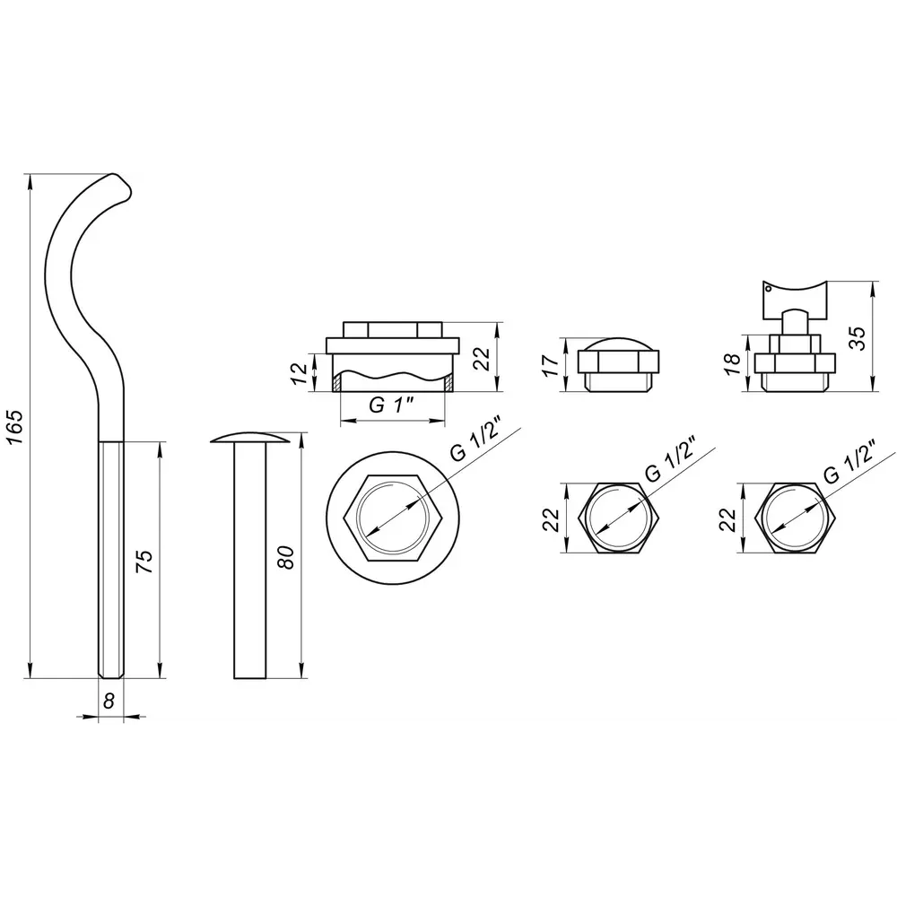 Комплект футорок универсальный 1/2 "х1" с 3-кронштейнами CRISTAL NR 2016