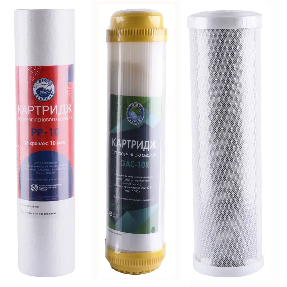 Комплект картриджей для систем очистки Bio + Systems "Смягчение" (PP, GAC, CTO)
