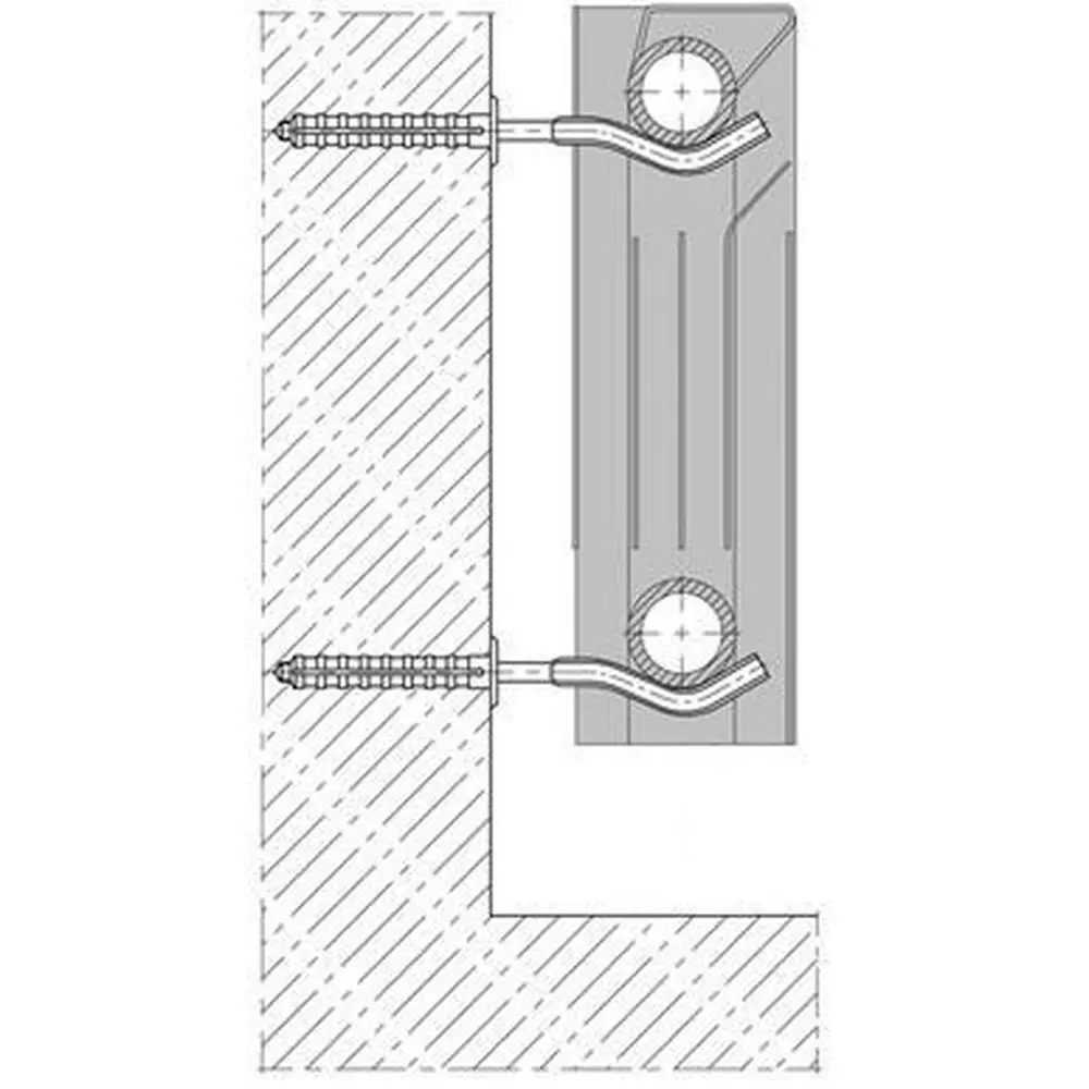 Призначення: Фіксування секційного (біметалічного, алюмінієвого) радіатора на ″твердотілих″ стінах (цегла, бітон, гіпсоблок, пеноблок і т.д.)