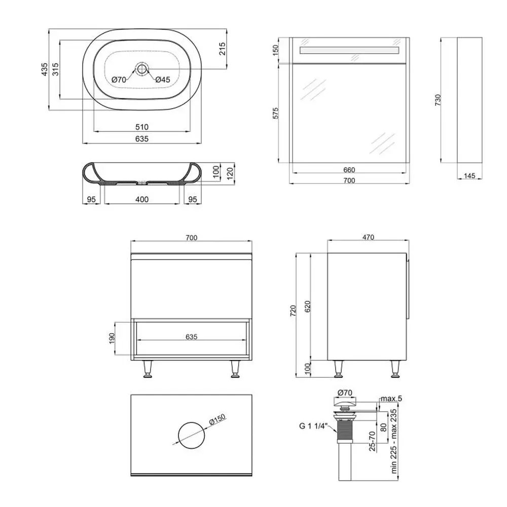 Комплект меблів для ванної Qtap Robin тумба + раковина + дзеркальна шафа QT044RO42976