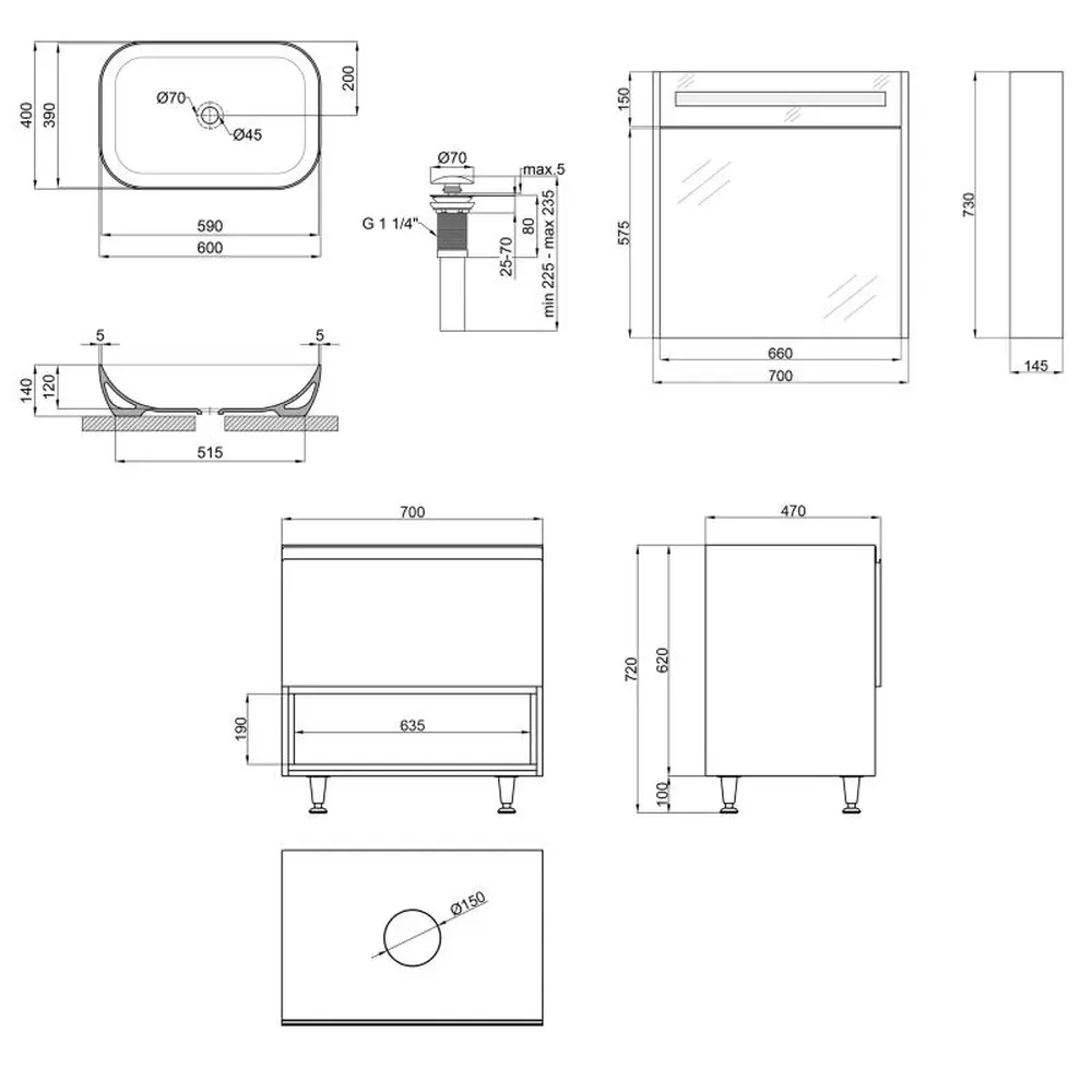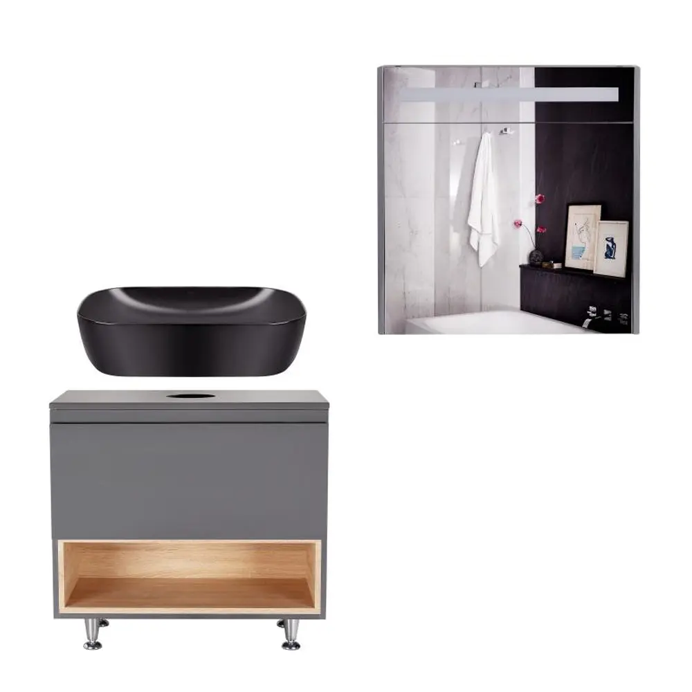 Тумба під раковину + дзеркальна шафа + раковина