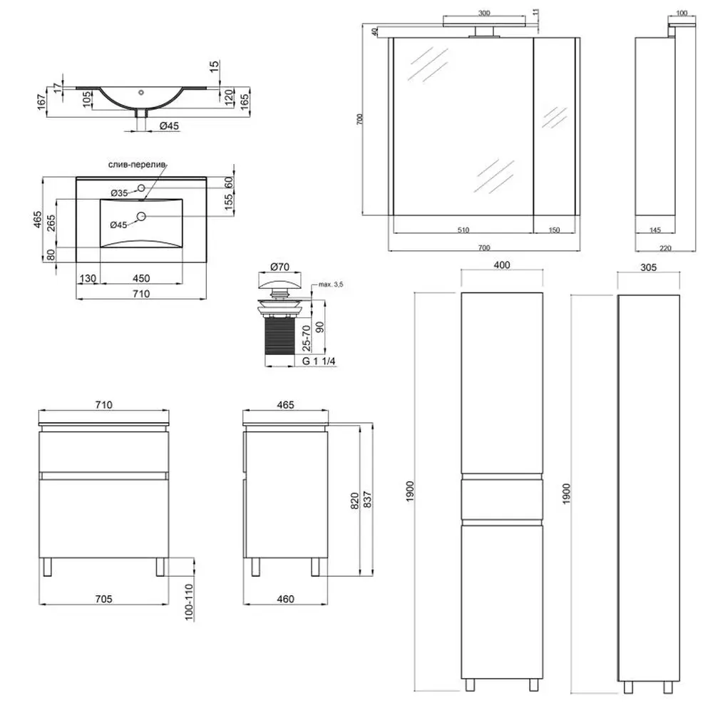 Комплект меблів для ванної Qtap Albatross тумба з раковиною + дзеркальна шафа + пенал QT044AL42953