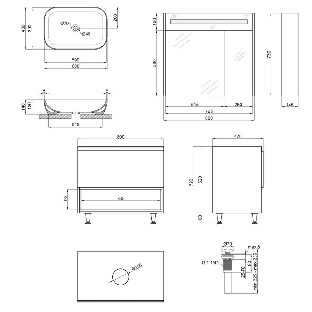 Комплект меблів для ванної Qtap Robin тумба + раковина + дзеркальна шафа QT044RO42983