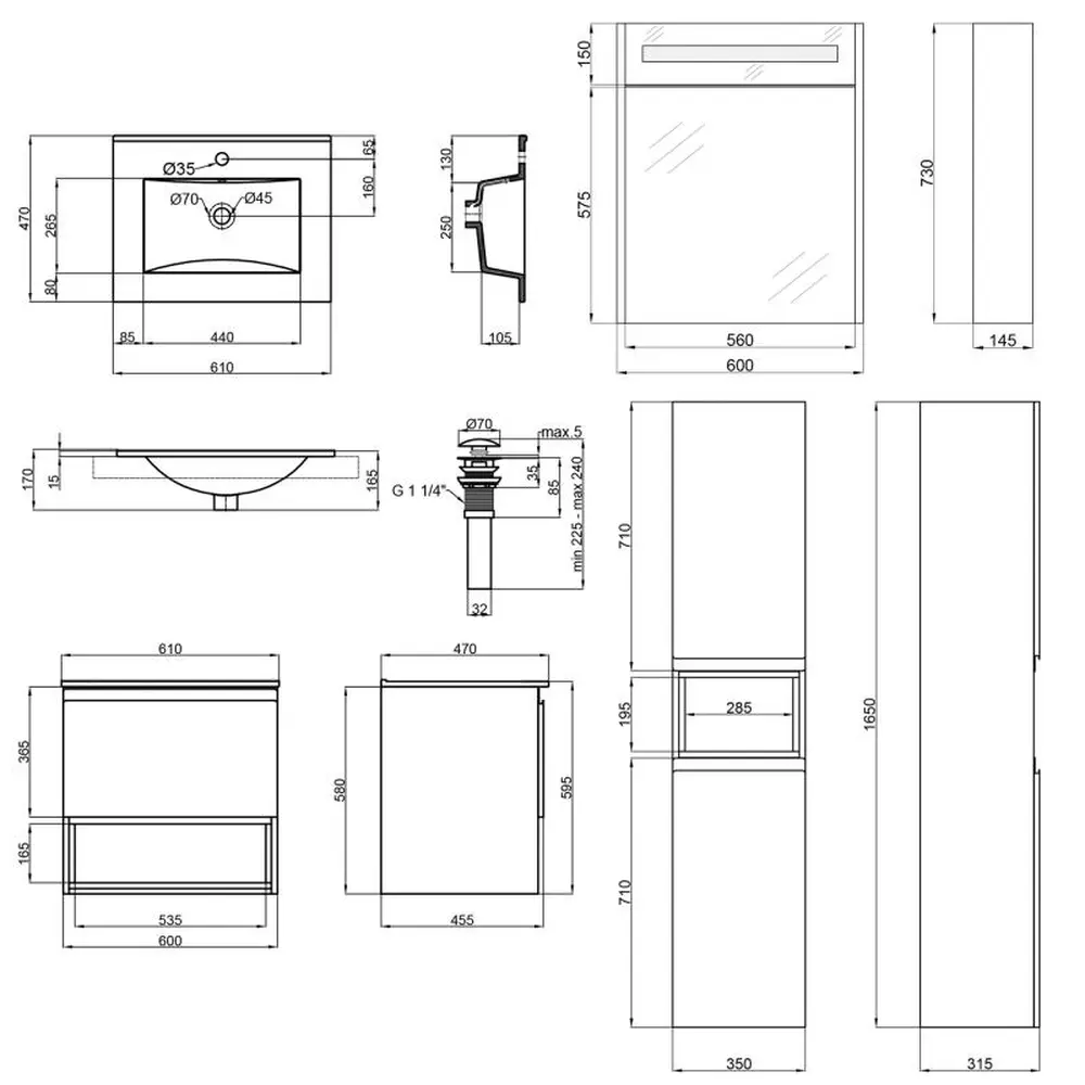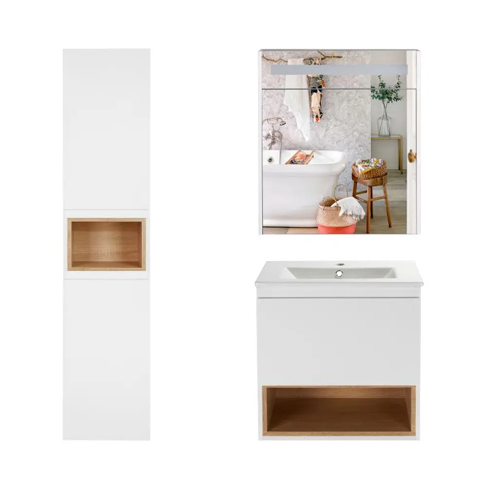 Комплект меблів для ванної Qtap Robin тумба з раковиною + дзеркальна шафа + пенал QT044RO42969