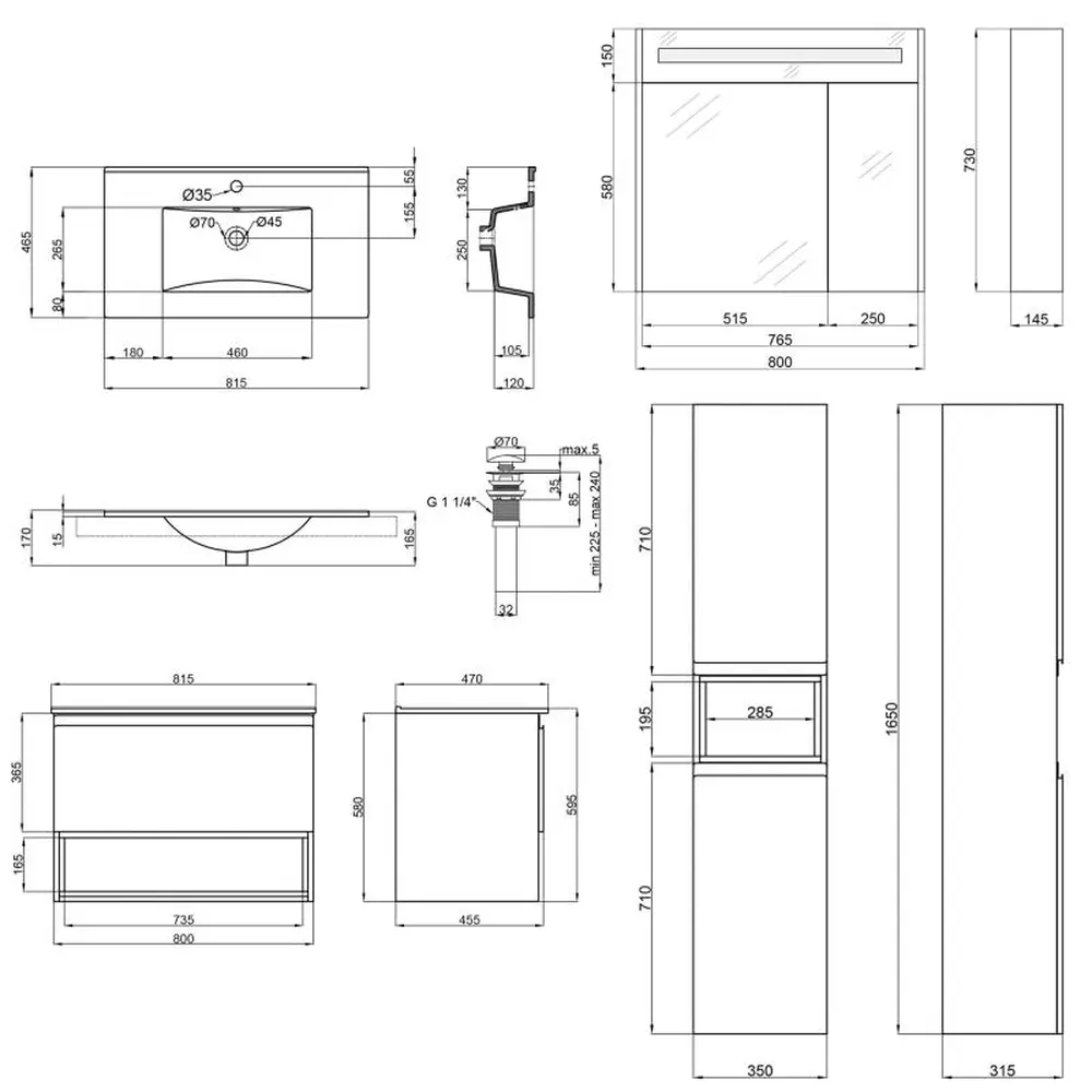 Тумба з раковиною + дзеркальна шафа + пенал