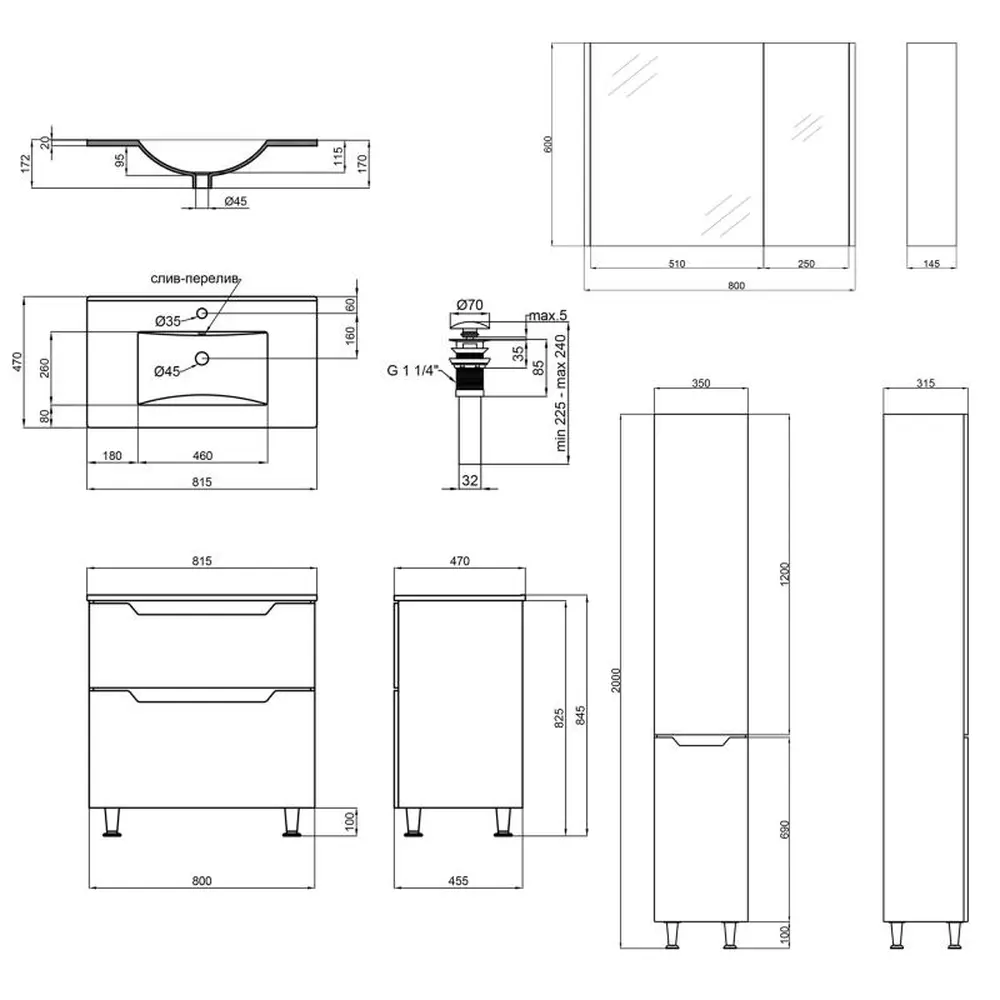 Комплект меблів для ванної Qtap Scorpio тумба з раковиною + дзеркальна шафа + пенал QT044SK42988