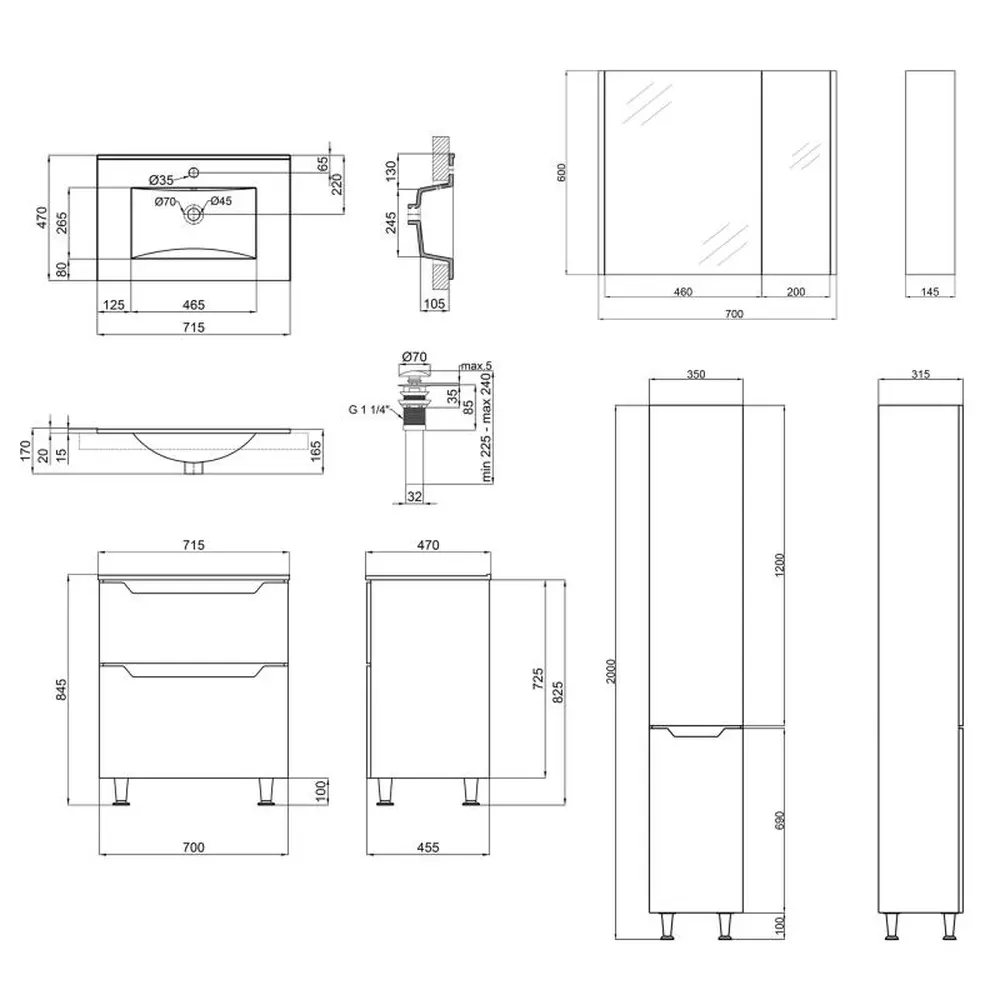Комплект меблів для ванної Qtap Scorpio тумба з раковиною + дзеркальна шафа + пенал QT044SK43629