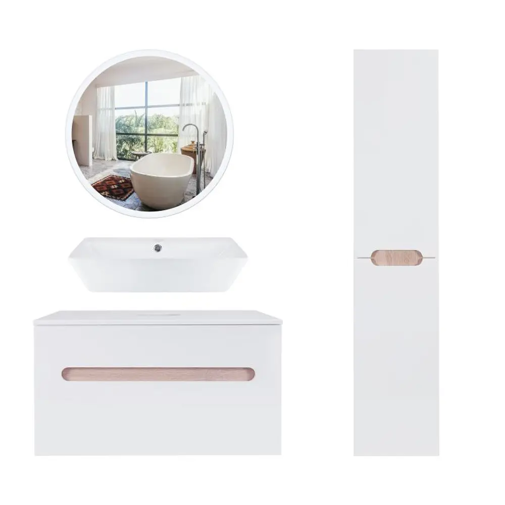 Комплект меблів для ванної Qtap Virgo тумба + раковина + дзеркало + пенал QT044VI43001