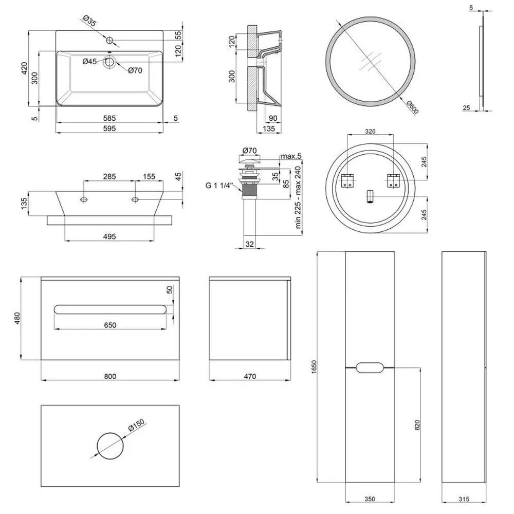 Тумба під раковину + дзеркало + пенал + раковина