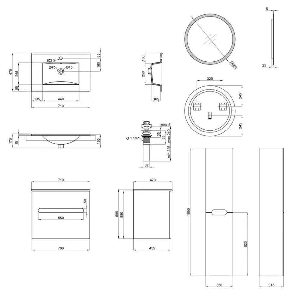 Тумба з раковиною + дзеркало + пенал