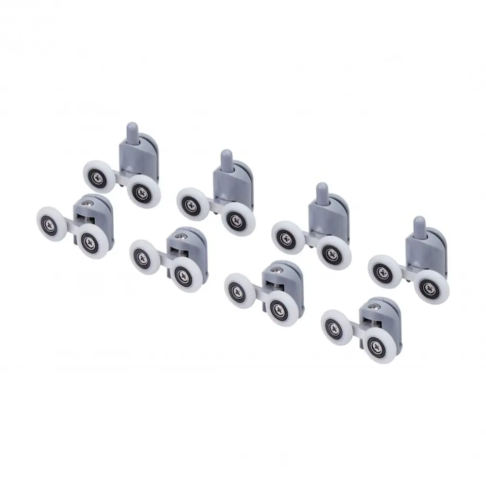 Комплект подвійних роликів Lidz Rolki SAT.DOUBLE.23.4 виконаний з якісних і надійних матеріалів. Підходить для душових кабін з товщиною скла 4 мм. У комплектацію входять 4 штуки нижніх і 4 штуки верхніх роликів.