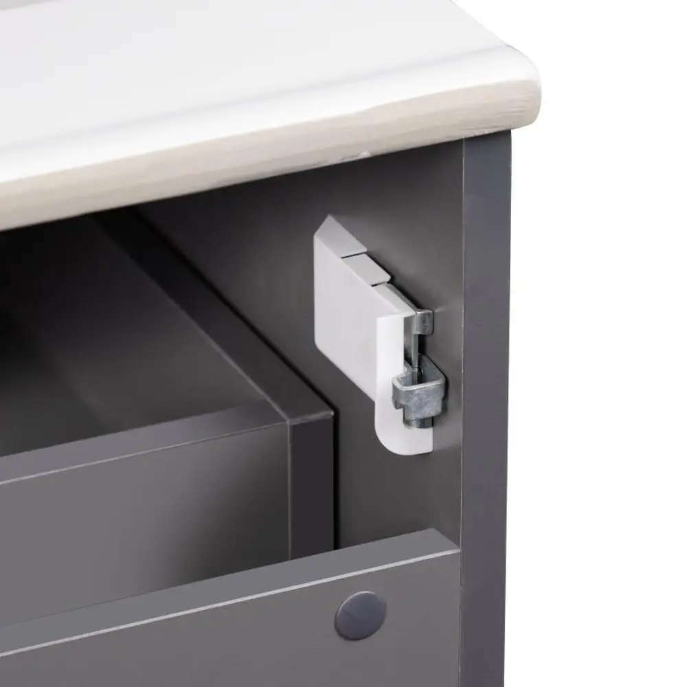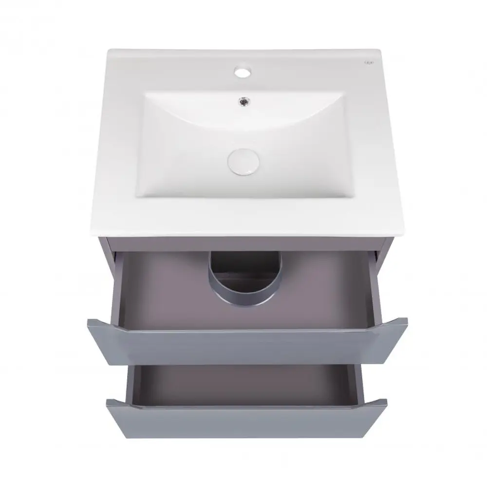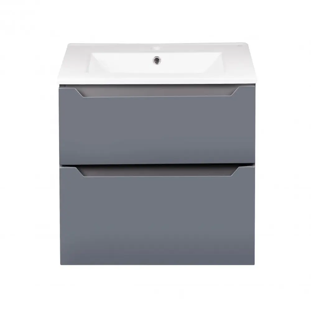 Підвісна тумба з умивальником Qtap Scorpio QT1472TPВ6023060CG виконана в лаконічному стилі, який доповнить дизайн будь-якої ванної кімнати. Раковина виготовлена з якісної кераміки білого кольору, вона виконана з отвором під сифон і переливом. Корпус тумби сірого кольору виготовлений з ЛДСП, фасадна частина - з МДФ з глянцевим покриттям. Оснащена двома висувними ящиками з механізмом доводчика.