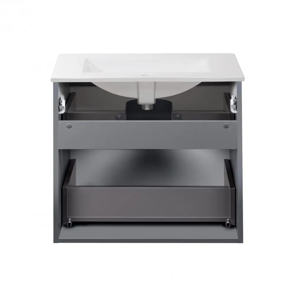 Підвісна тумба з раковиною Qtap Scorpio QT1472TPВ7023070CG виконана в лаконічному стилі, який доповнить дизайн будь-якої ванної кімнати. Раковина виготовлена з якісної кераміки білого кольору, вона виконана з отвором під сифон і переливом. Корпус тумби сірого кольору виготовлений з ЛДСП, фасадна частина - з МДФ з глянцевим покриттям. Оснащена двома висувними ящиками з механізмом доведення.