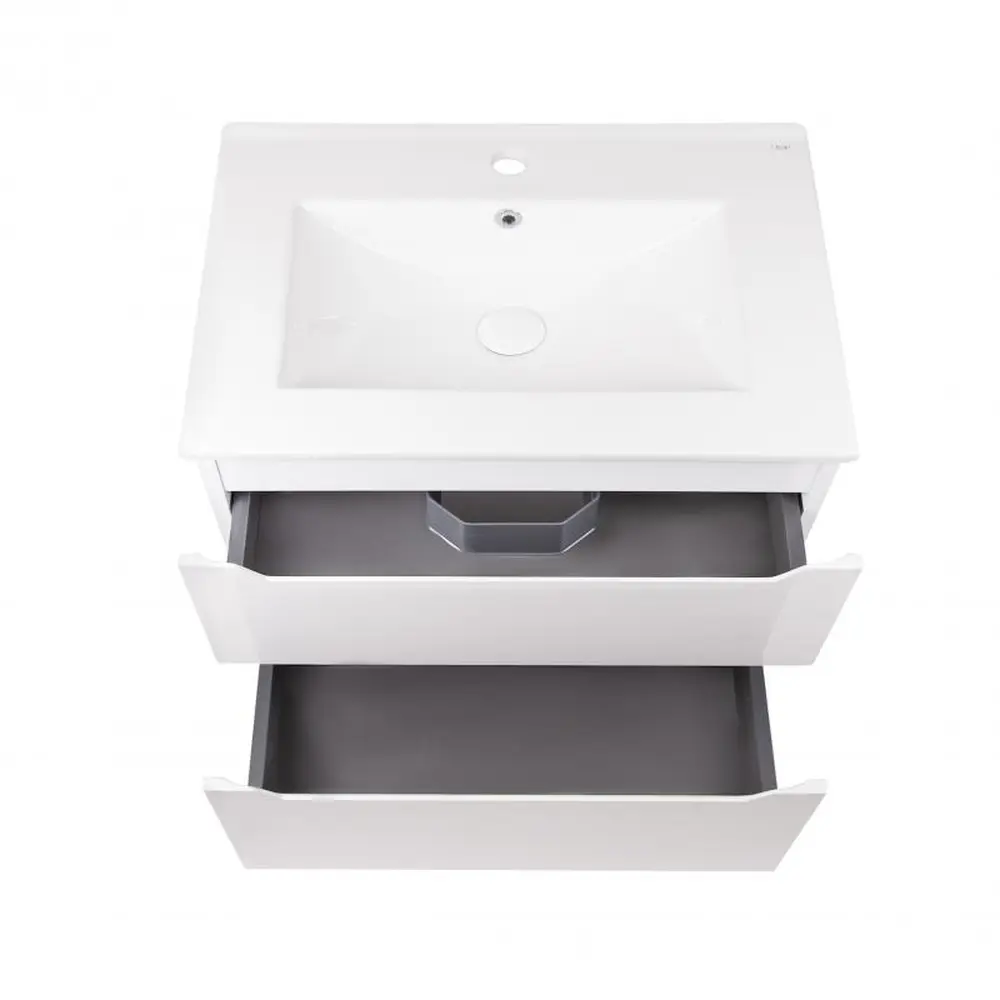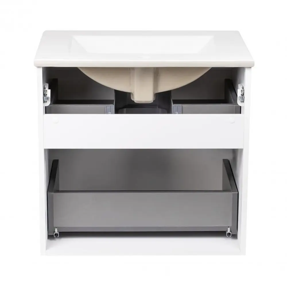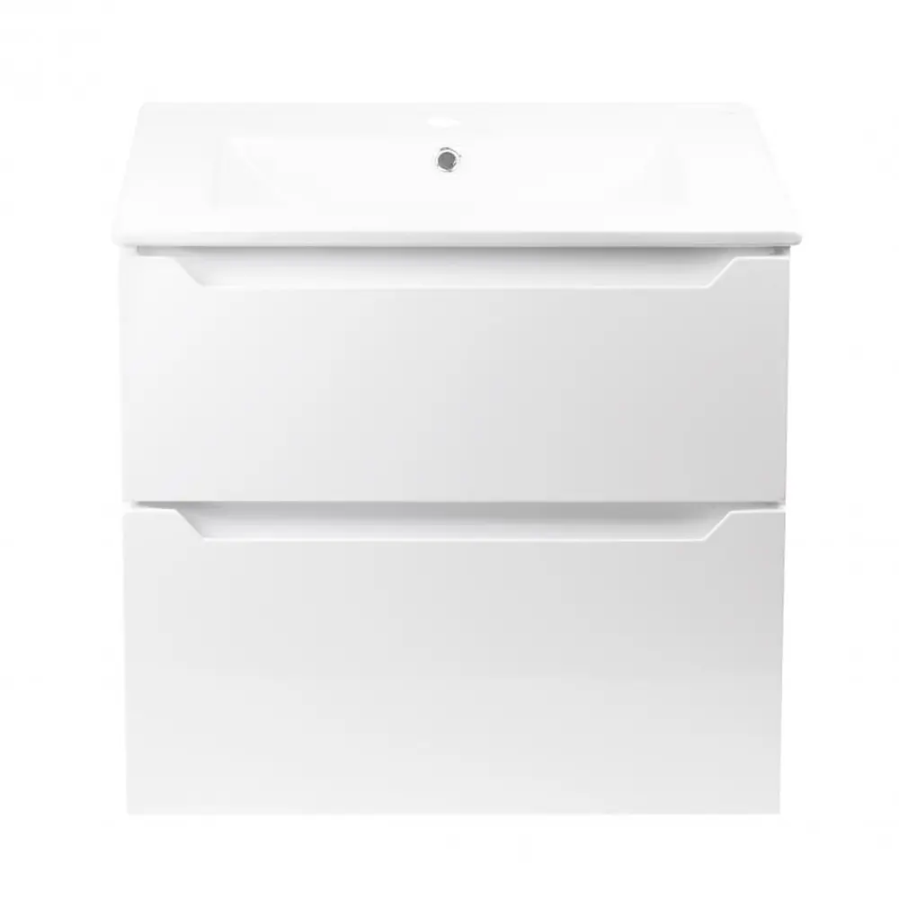 Підвісна тумба з раковиною Qtap Scorpio QT1472TPВ6013060CW виконана в лаконічному стилі, який доповнить дизайн будь-якої ванної кімнати. Раковина виготовлена з якісної кераміки білого кольору, вона виконана з отвором під сифон і переливом. Корпус тумби білого кольору виготовлений з ЛДСП, фасадна частина - з МДФ з глянцевим покриттям. Оснащена двома висувними ящиками з механізмом доведення.
