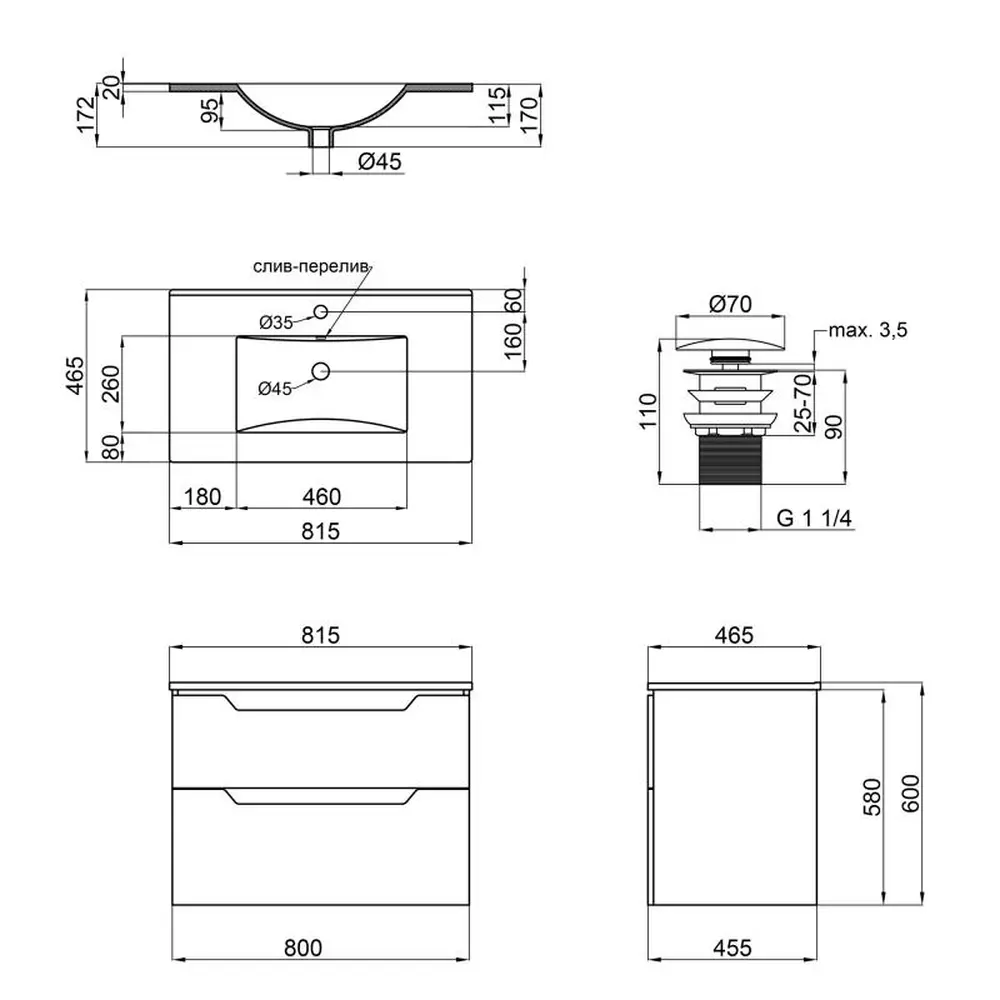Тумба, раковина, донний клапан, дюбель розпірний з L-подібним гаком.