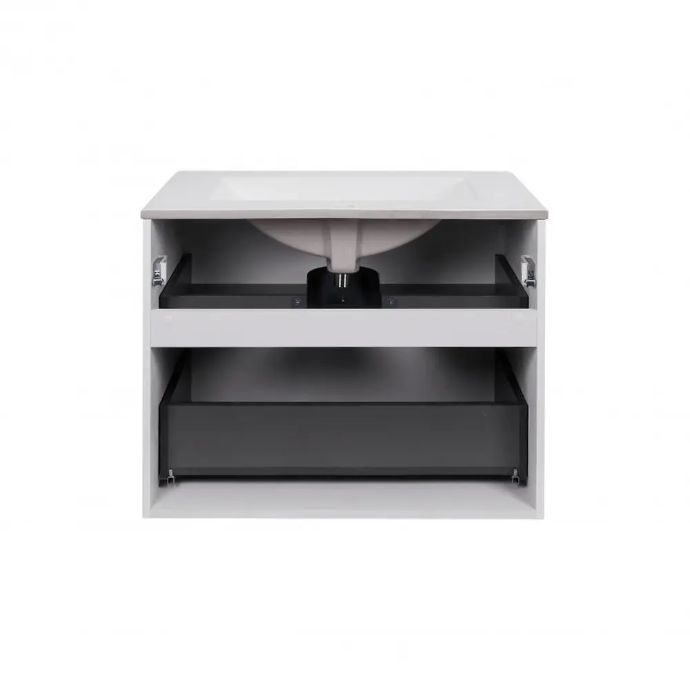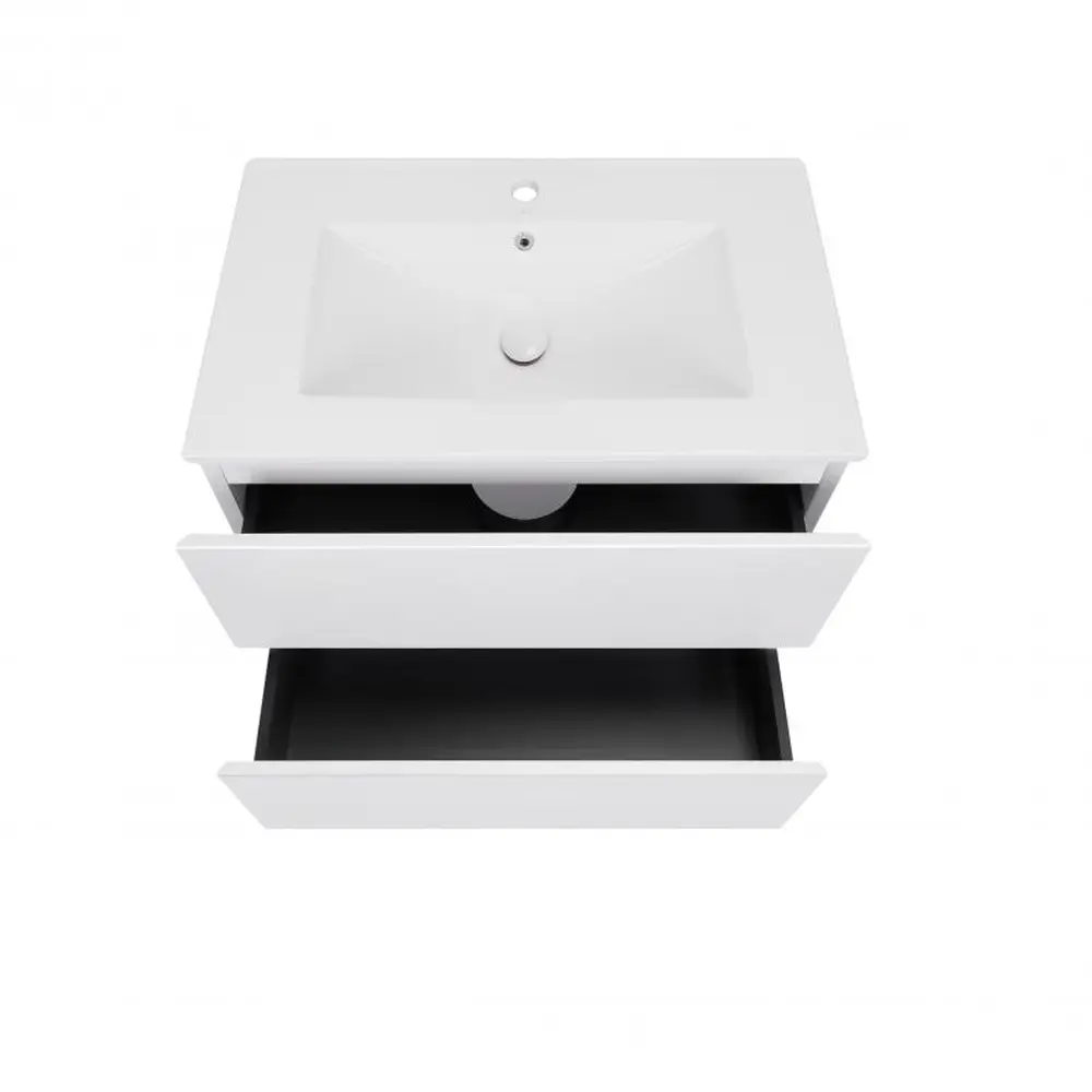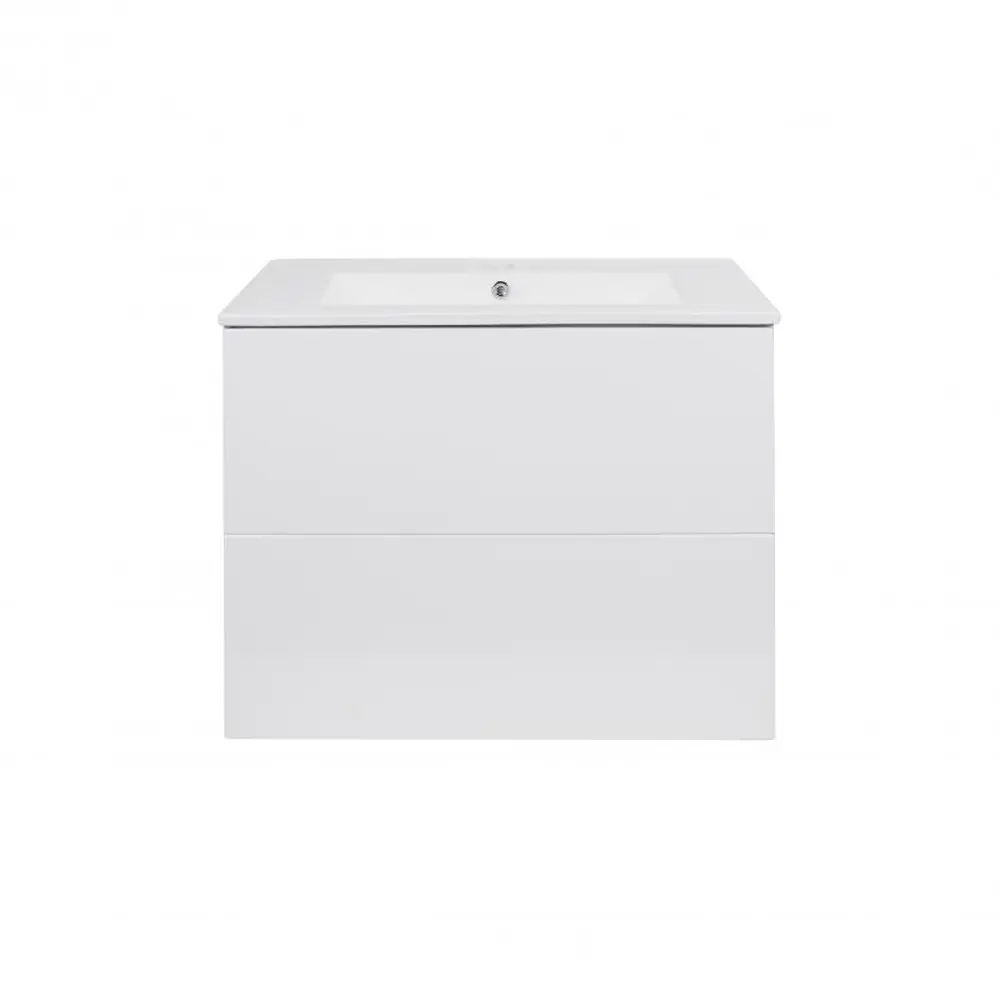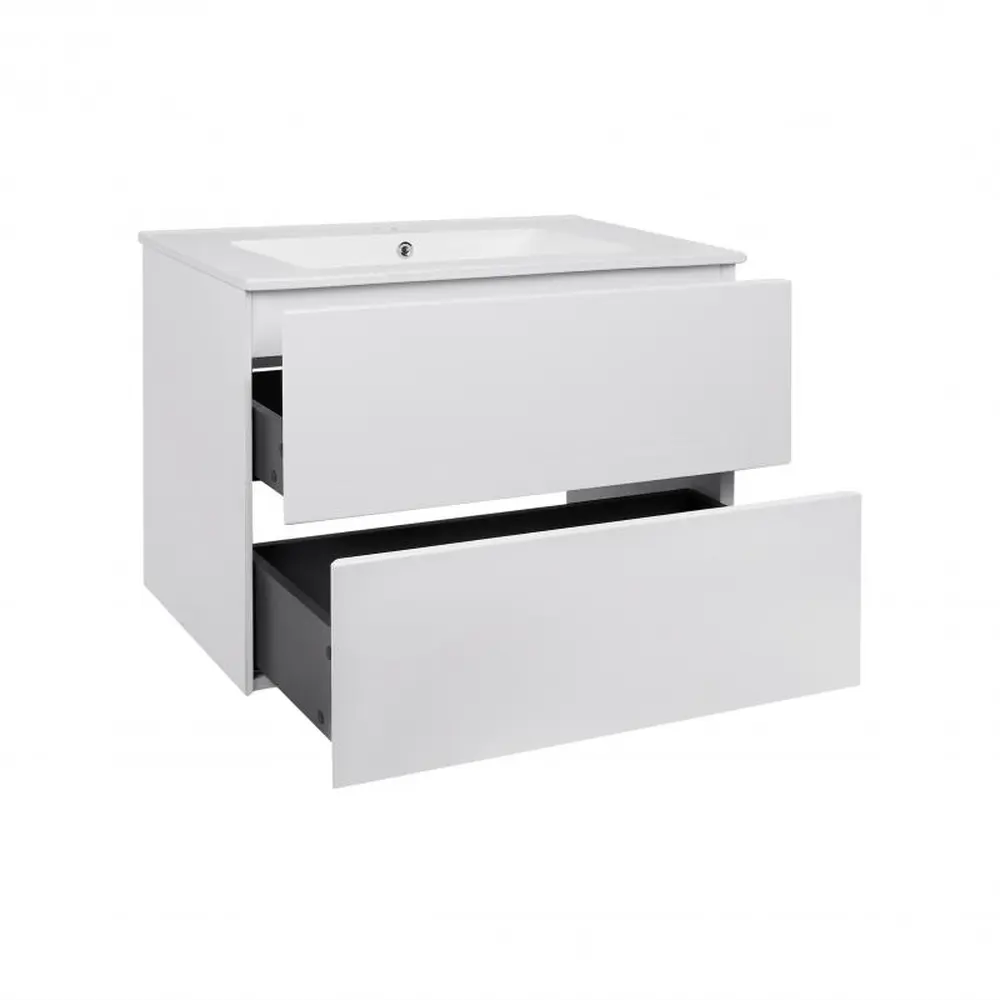 Комплект Qtap Tern 700х580х437 White Підвісна тумба + раковина урізна QT1772TPL7013070CW виконаний у лаконічному стилі, який доповнить дизайн будь-якої ванної кімнати. Раковина виготовлена із якісної кераміки білого кольору, вона виконана з отвором під сифон та переливом. Корпус тумби білого кольору виготовлений із ЛДСП, фасадна частина із МДФ із глянцевим покриттям. Також тумба має 2 місткі висувні ящики, оснащені сучасною зручною системою відкривання Push-to-Open.