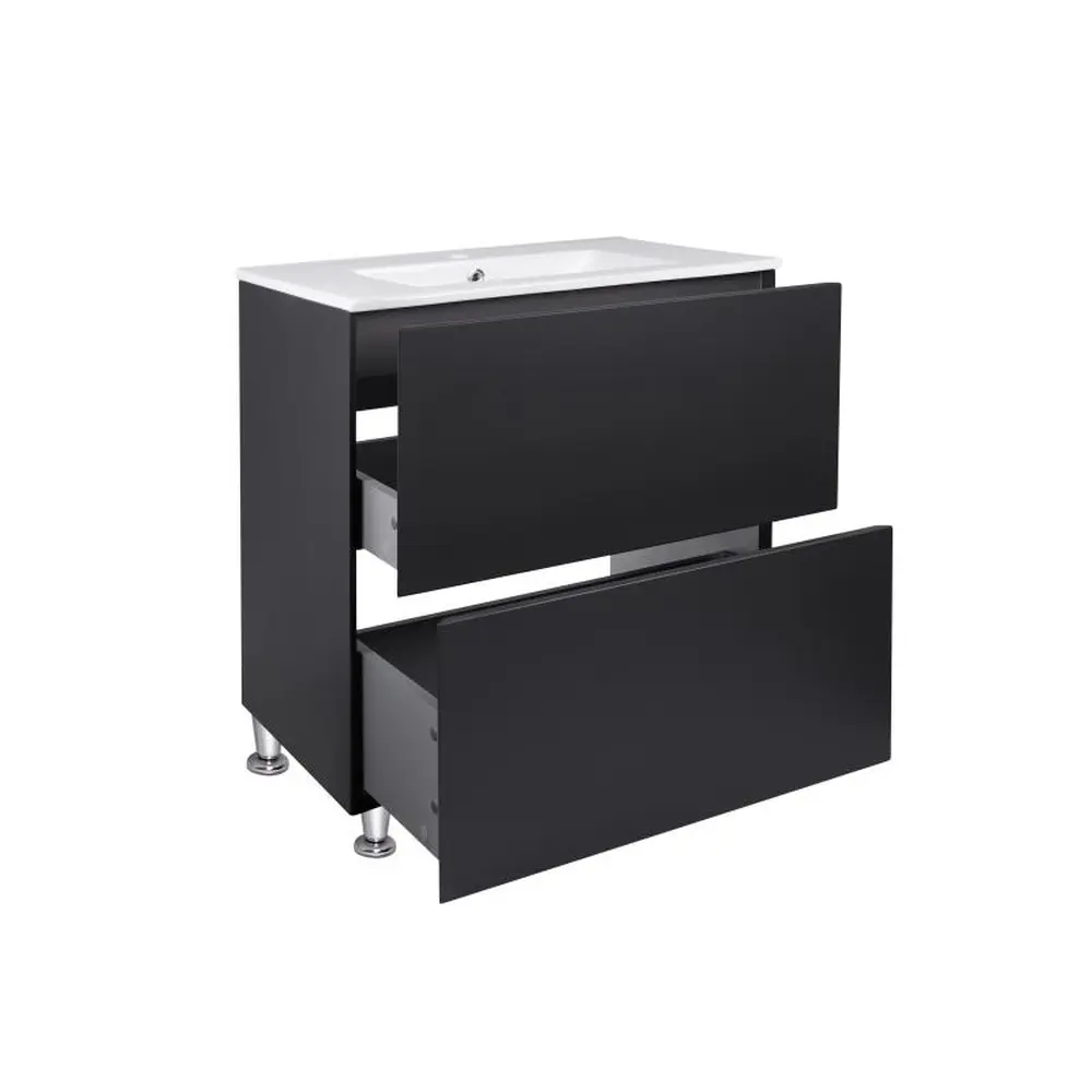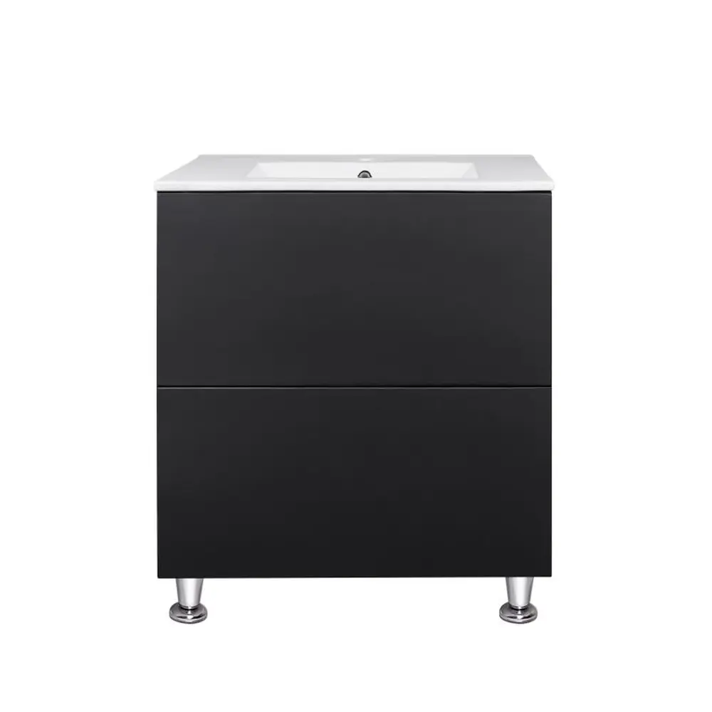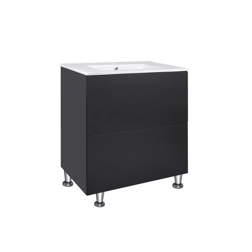 Комплект Qtap Tern 700х725х437 Matt black підлогова тумба + урізна раковина QT1771TNL7023070CMB виконаний в лаконічному стилі, який доповнить дизайн будь-якої ванної кімнати. Раковина виготовлена із якісної кераміки білого кольору, вона виконана з отвором під сифон та переливом. Корпус тумби чорного кольору виготовлений із ЛДСП, фасадна частина – із МДФ. Також тумба оснащена сучасною зручною системою відкривання ящиків push-to-open. Такий виріб стане яскравим доповненням будь-якої ванної кімнати