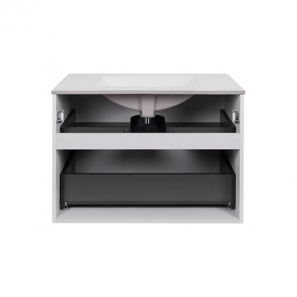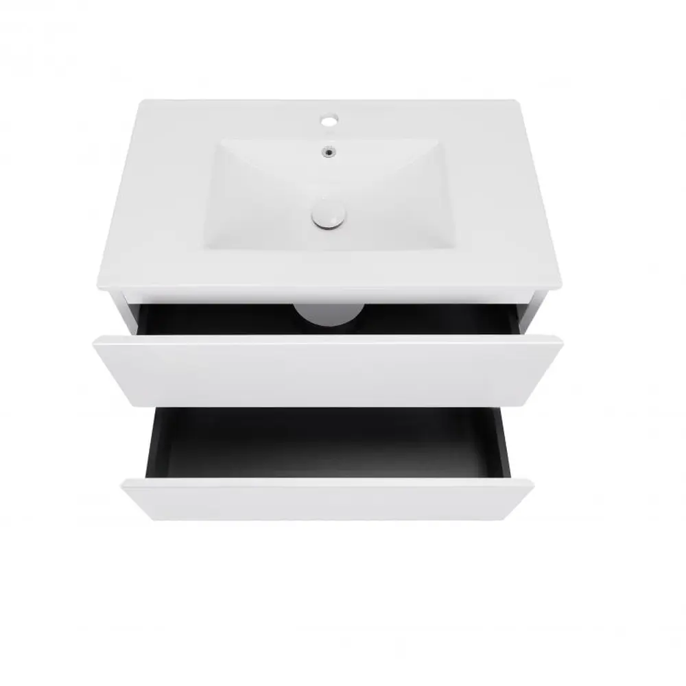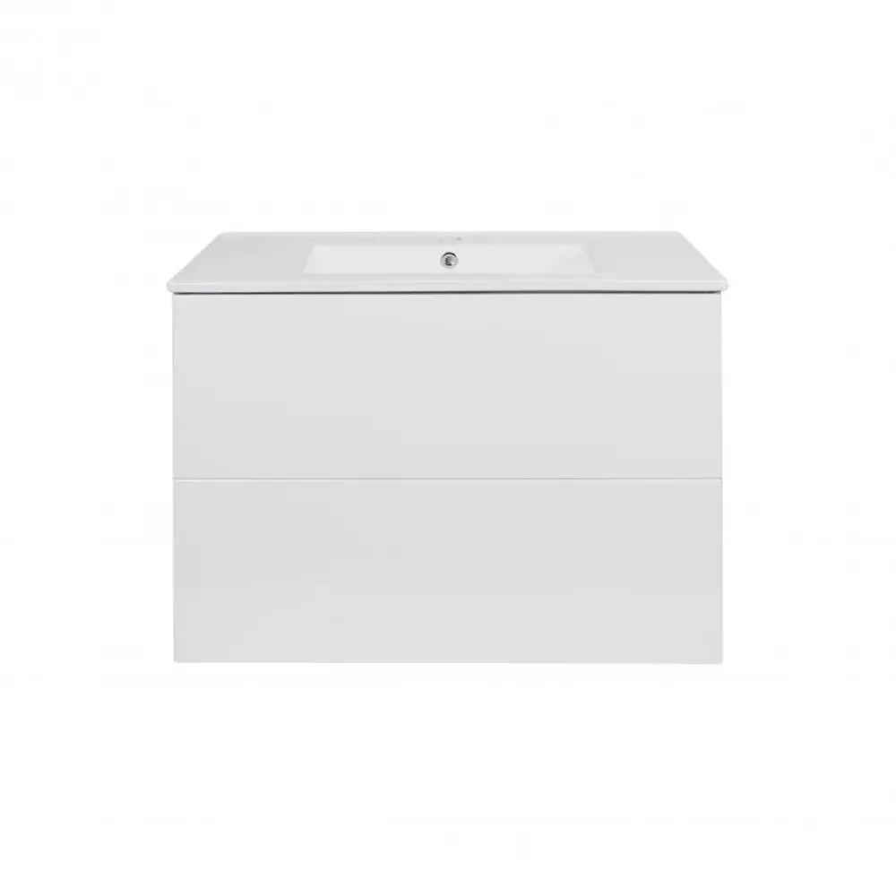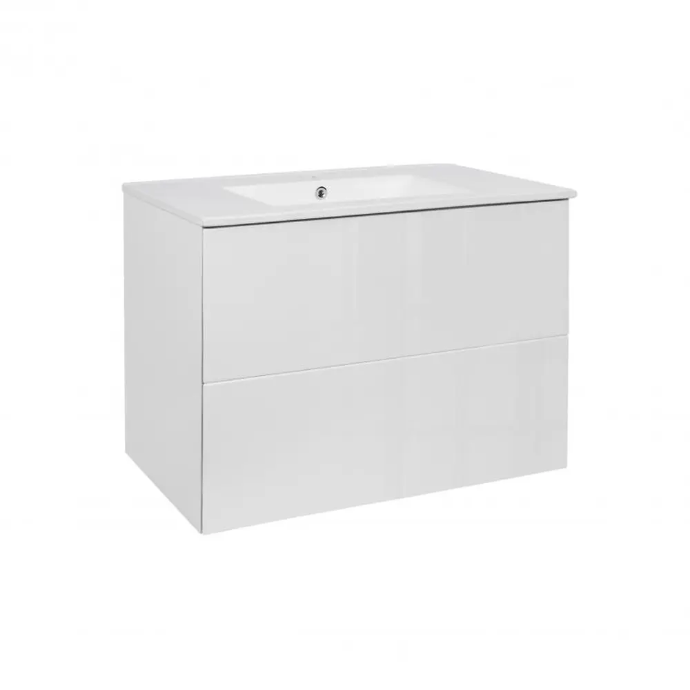 Комплект Qtap Tern 800х580х437 White Підвісна тумба + раковина урізна QT1772TPL8013080CW виконаний у лаконічному стилі, що доповнить дизайн будь-якої ванної кімнати. Раковина виготовлена із якісної кераміки білого кольору, вона виконана з отвором під сифон та переливом. Корпус тумби білого кольору виготовлений із ЛДСП, фасадна частина із МДФ із глянцевим покриттям. Також тумба має сучасну зручну систему відкривання ящиків push-to-open.