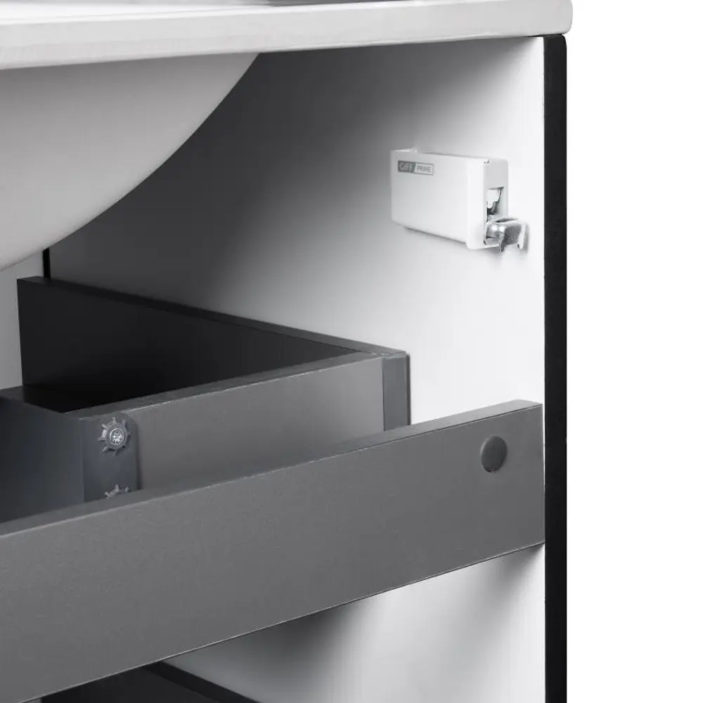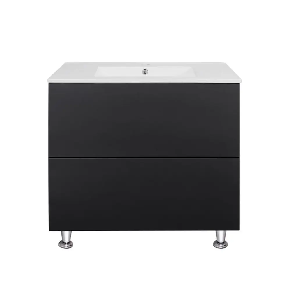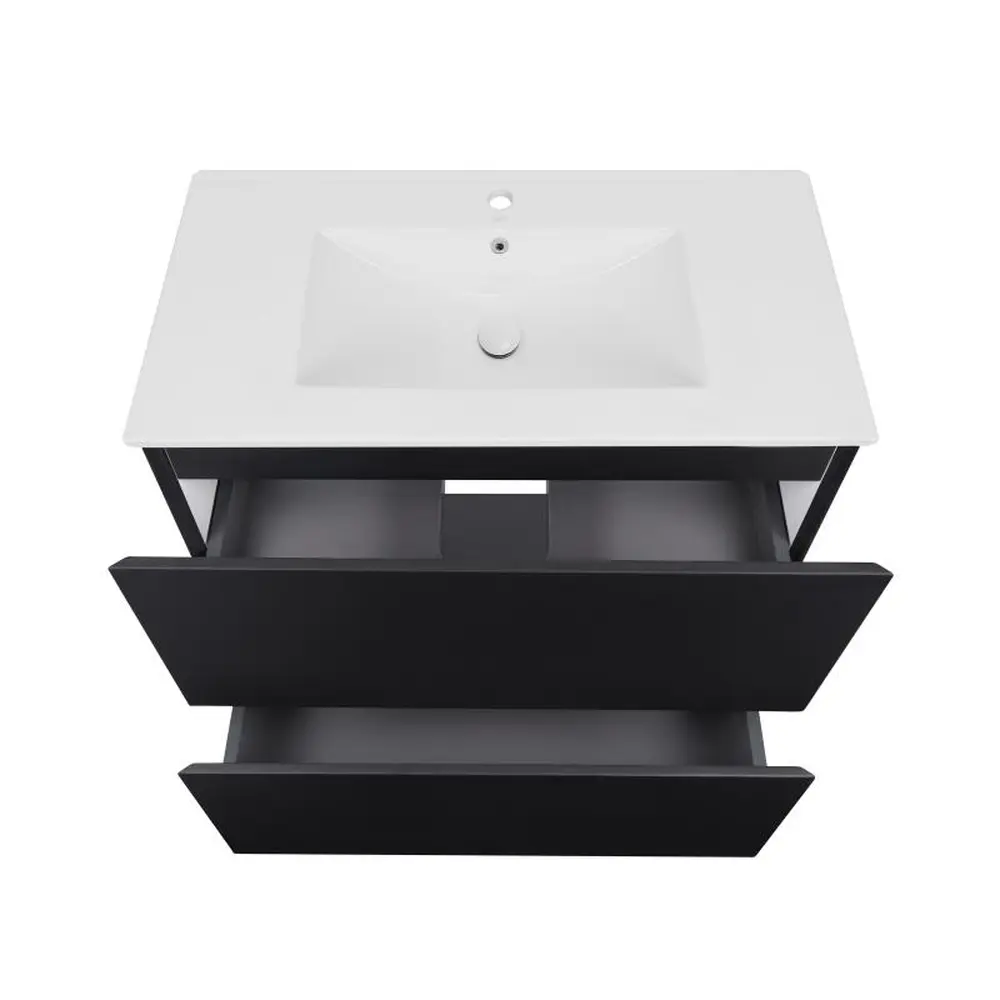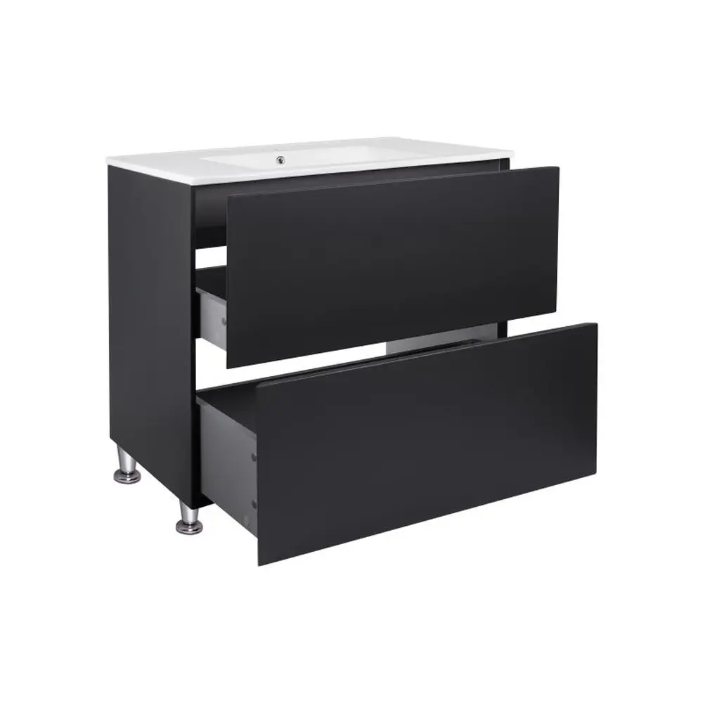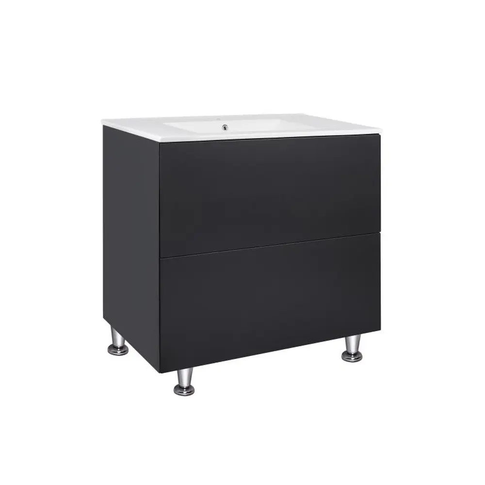 Комплект Qtap Tern 800х725х437 Matt black підлогова тумба + урізна раковина QT1771TNL8023080CMB виконаний в лаконічному стилі, який доповнить дизайн будь-якої ванної кімнати. Раковина виготовлена із якісної кераміки білого кольору, вона виконана з отвором під сифон та переливом. Корпус тумби чорного кольору виготовлений із ЛДСП, фасадна частина – із МДФ. Також тумба оснащена сучасною зручною системою відкривання ящиків push-to-open. Такий виріб стане яскравим доповненням будь-якої ванної кімнати