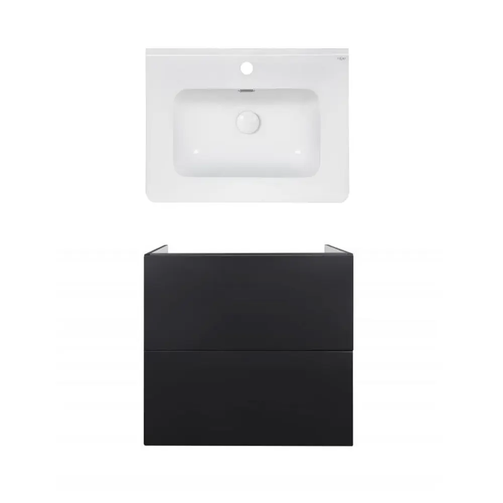 Комплект Qtap тумба підвісна Tern 600х580х437 мм Matt Black + раковина урізна Albatross E QT71TE44118