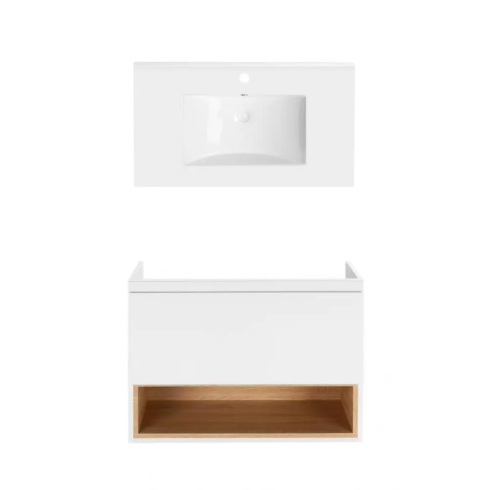 Комплект Qtap тумба підвісна Robin 800х580х437 мм White/Whitish oak + раковина урізна Albatross QT71RO44035