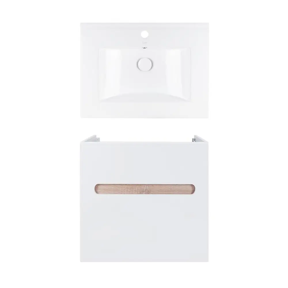 Комплект Qtap тумба підвісна Virgo 600х580х437 мм White/Whitish oak + раковина урізна Albatross QT71V44070