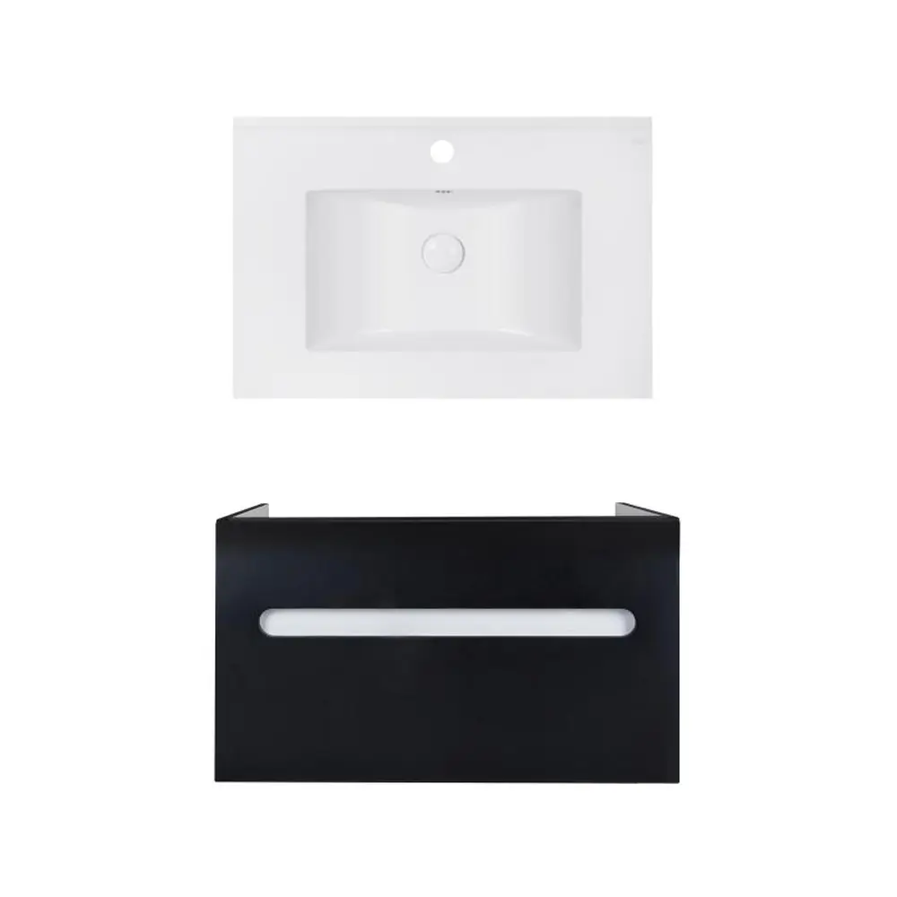 Комплект Qtap тумба підвісна Virgo 700х580х437 мм Black/White + раковина урізна Albatross E QT71V44063