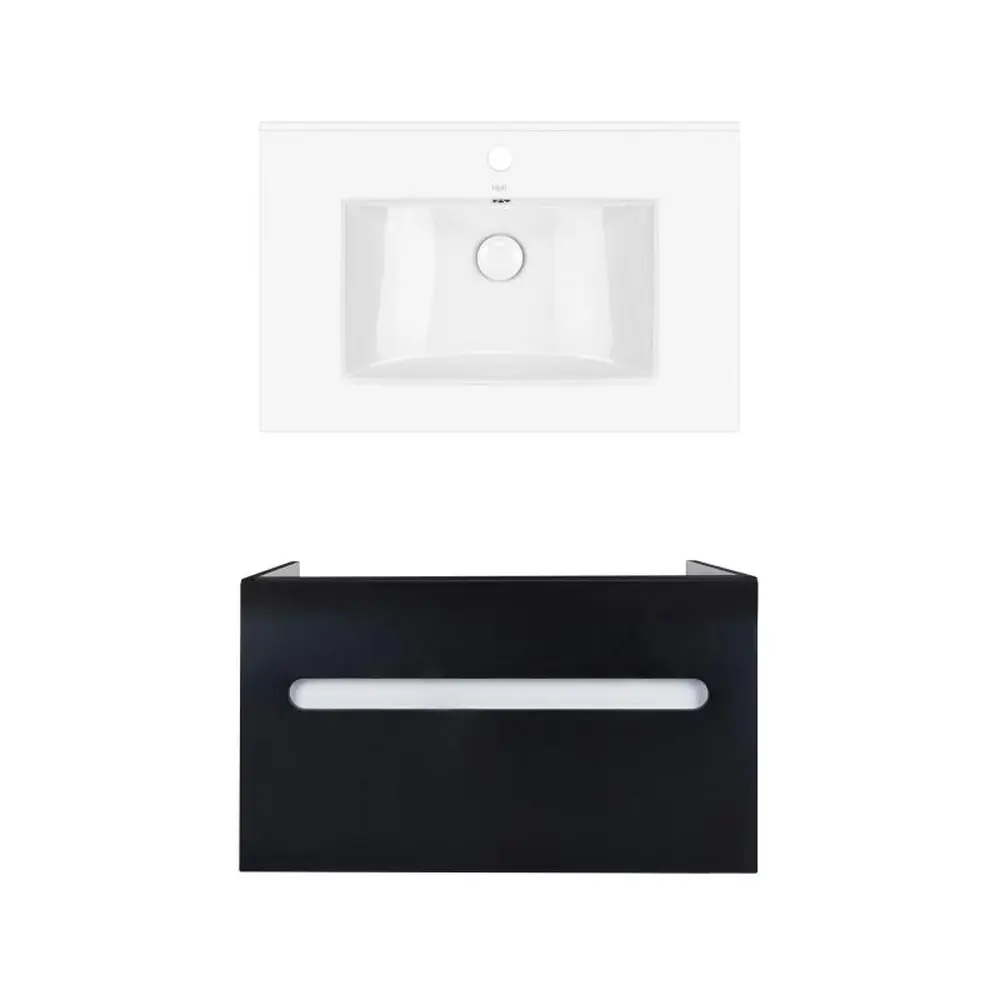Комплект Qtap тумба підвісна Virgo 700х580х437 мм Black/White + раковина урізна Albatross QT71V44062