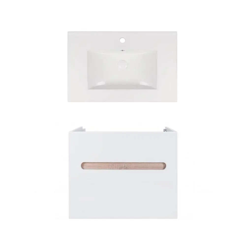 Комплект Qtap тумба підвісна Virgo 700х580х437 мм White/Whitish oak + раковина урізна Albatross New QT71V44078