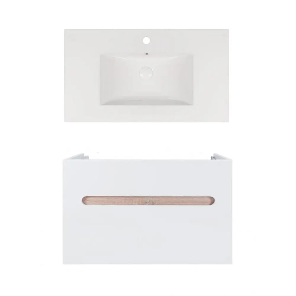 Комплект Qtap тумба підвісна Virgo 800х580х437 мм White/Whitish oak + раковина урізна Albatross New QT71V44083