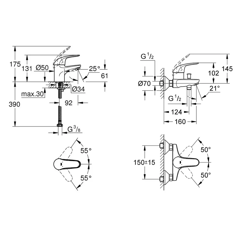 Змішувач для ванни (32743000), змішувач для раковини S-Size (32734000), Душовий гарнітур, 1 режим струменя (27853000)