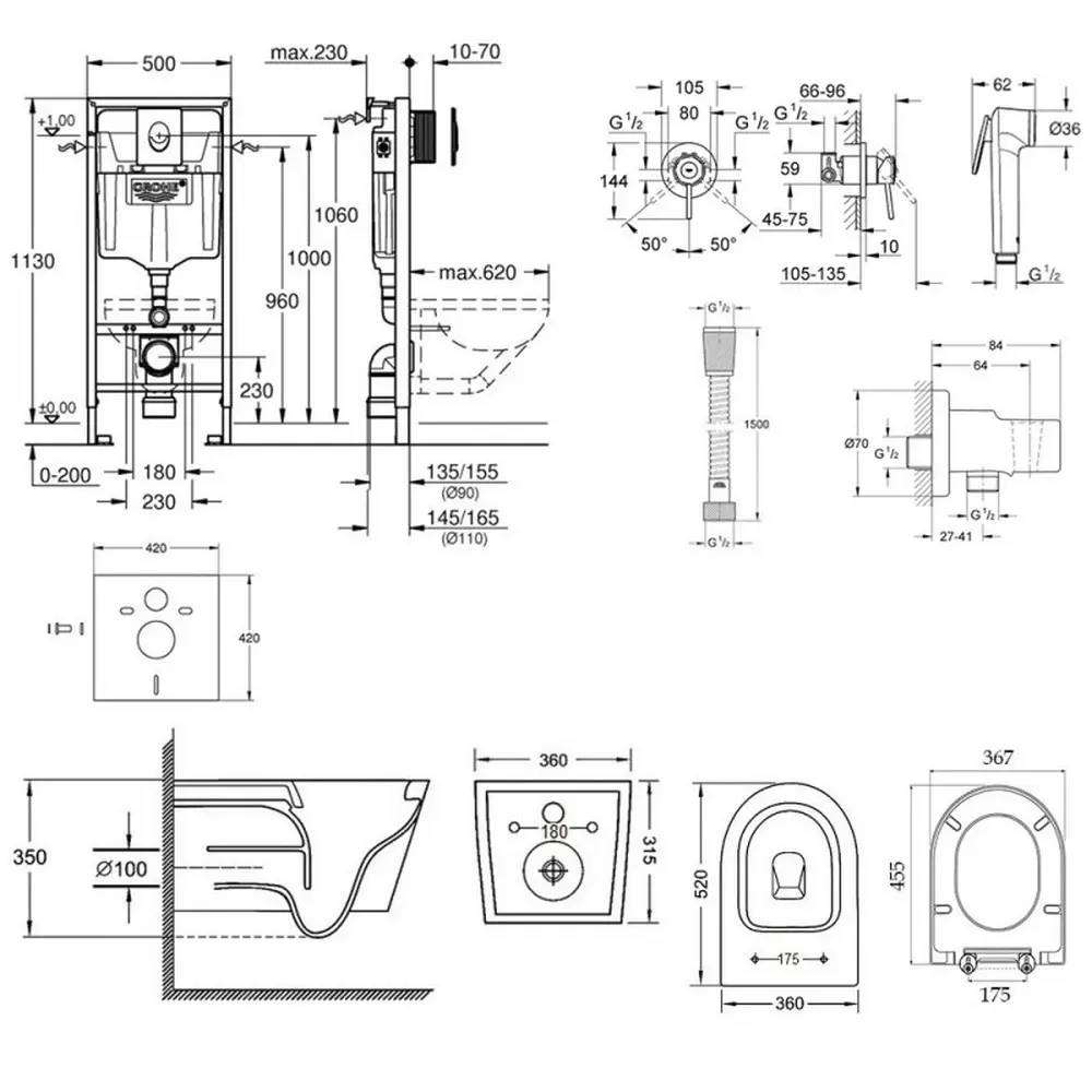 Комплект унітаз з сидінням Qtap Jay WHI 5176 + інсталяція Grohe Rapid SL 38722001 + набір для гігієнічного душу зі змішувачем Grohe BauClassic 111048 є надійним і практичним доповненням будь-якого сучасного санвузла й відмінним рішенням поліпшення рівня гігієнічних процедур. Комплект складається з якісного та зручного унітаза з сидінням, надійної інсталяційної системи з панеллою змиву, а також гігієнічного душу зі змішувачем, що дозволить розширити функціонал санвузла в цілому.
