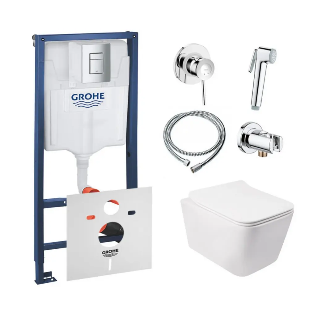 Комплект унітаз з сидінням Qtap Crow WHI 5170 + інсталяція Grohe Rapid SL 38772001 + набір для гігієнічного душу зі змішувачем Grohe BauClassic 111048 є надійним і практичним доповненням будь-якого сучасного санвузла й відмінним рішенням поліпшення рівня гігієнічних процедур. Комплект складається з якісного та зручного унітаза з сидінням, надійної інсталяційної системи з панеллою змиву, а також гігієнічного душу зі змішувачем, що дозволить розширити функціонал санвузла в цілому.