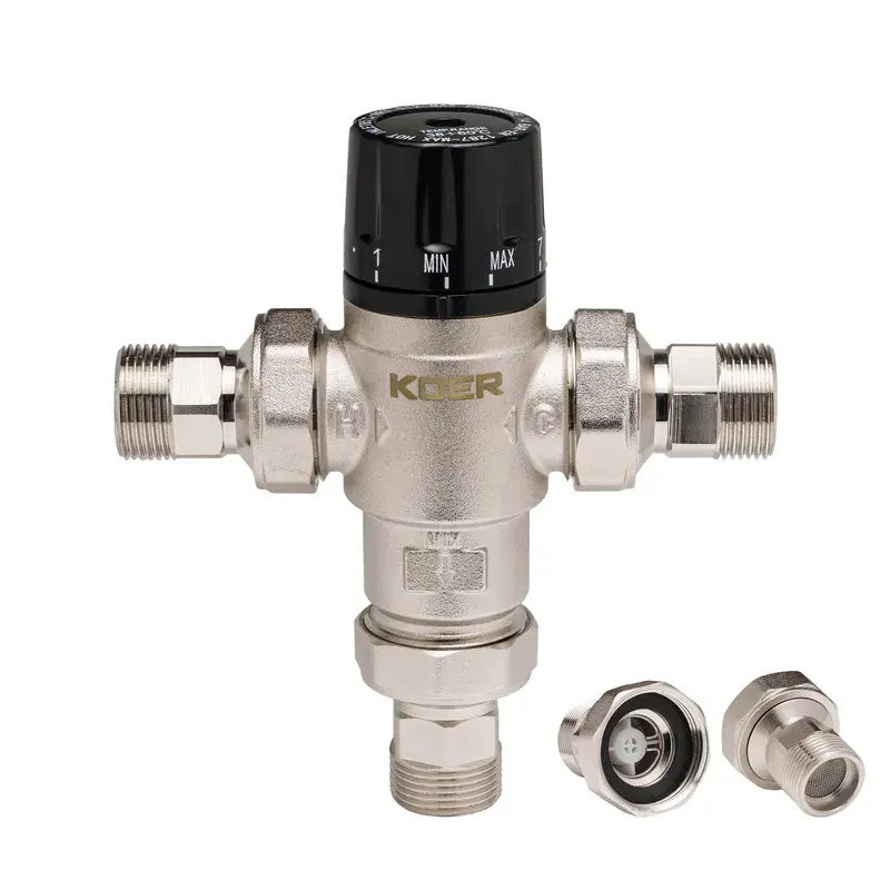Встановив цей термостатичний змішувач KOER у систему теплої підлоги — працює відмінно. Температуру тримає стабільно, ніяких перепадів. Якість виконання на висоті, всі з’єднання герметичні, комплект гайок зручний для монтажу. Дуже задоволений покупкою.