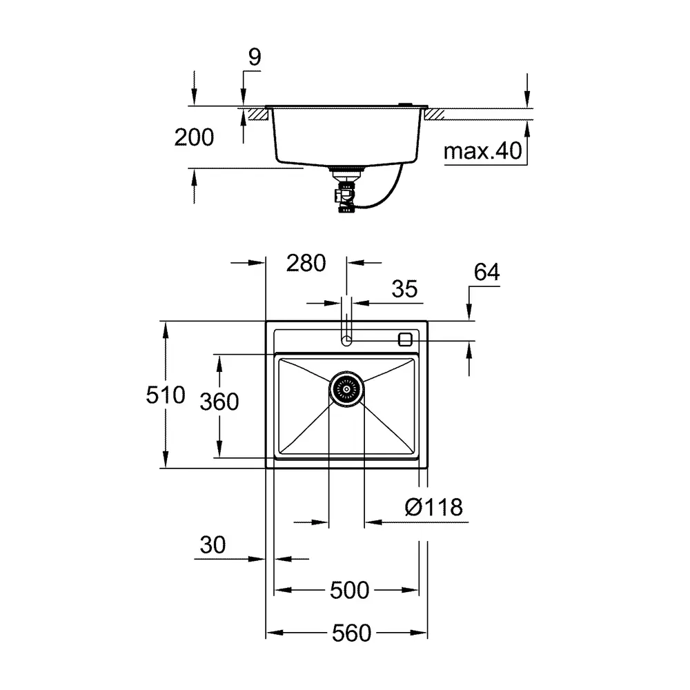 Мийка, сифон, клапан-автомат, зливний гарнітур, кошиковий вентиль, монтажний набір.