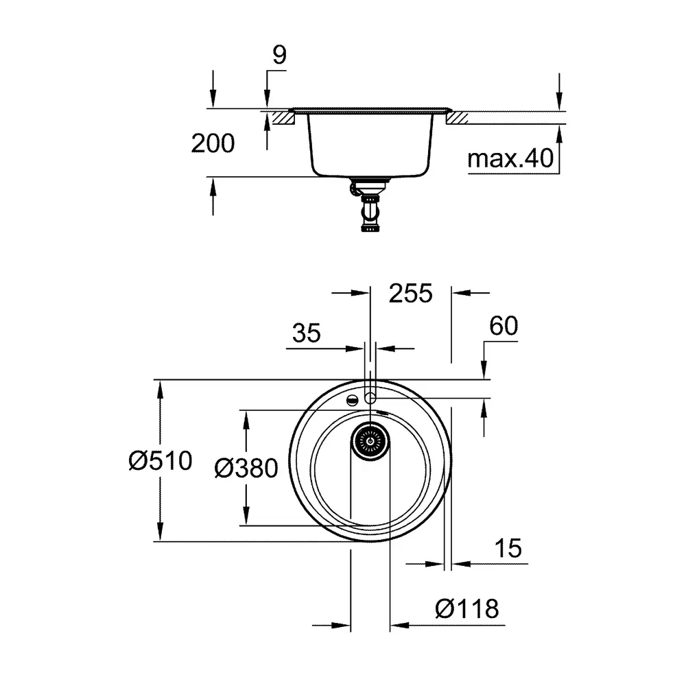 Мийка, сифон, клапан-автомат, зливний гарнітур, кошиковий вентиль, монтажний набір.