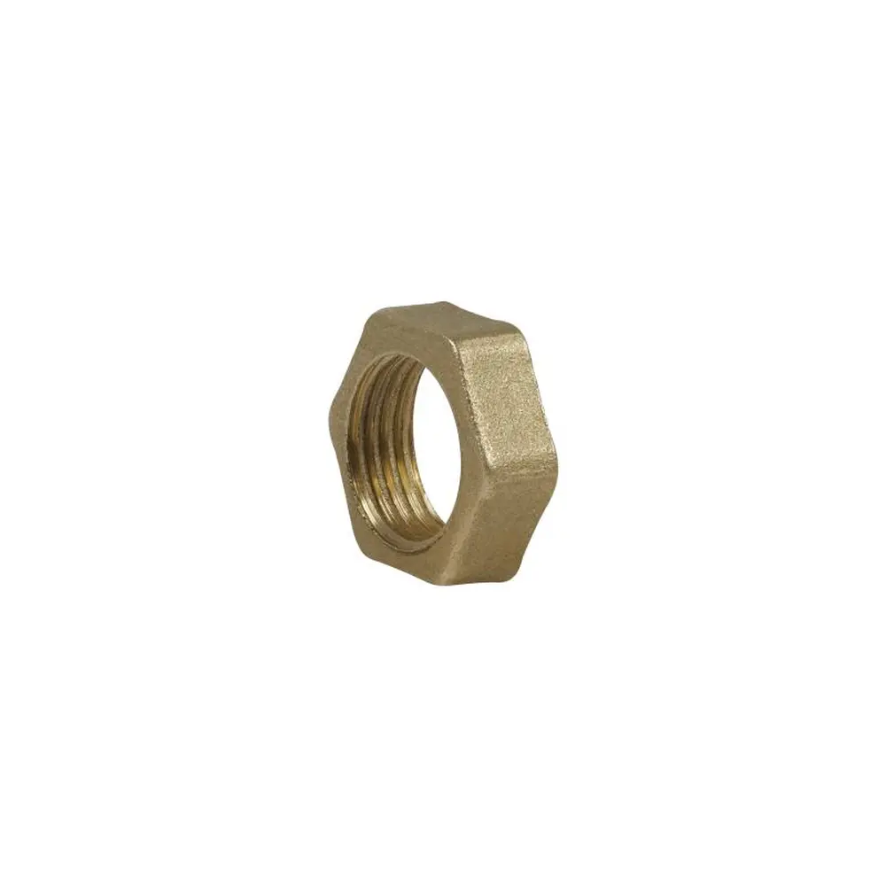 Контргайка латунна 1/2" — - спеціальна деталь-стопор, що нагвинчується перед (або після) основної гайки, для запобігання мимовільному розкручування різьбових з‘єднань. Застосування такого виробу допомагає простим та ефективним способом надійно зафіксувати з‘єднання вузлів та запобігти аварійній ситуації у різних інженерних комунікаціях.
