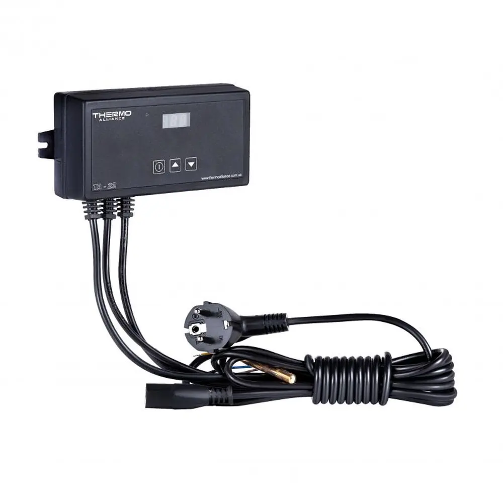 Контролер Thermo Alliance ТА22v2 для управління насосом ЦО — мікропроцесорна автоматика, призначена для систем опалення з котлом на твердому паливі. Регулятор підтримує задану температуру в точці вимірювання — вмикає/вимикає насос при підвищенні/зниженні температурного параметра. Передбачена можливість під’єднання до пристрою додаткового датчика. При виникненні небезпечних ситуацій подається звуковий сигнал.