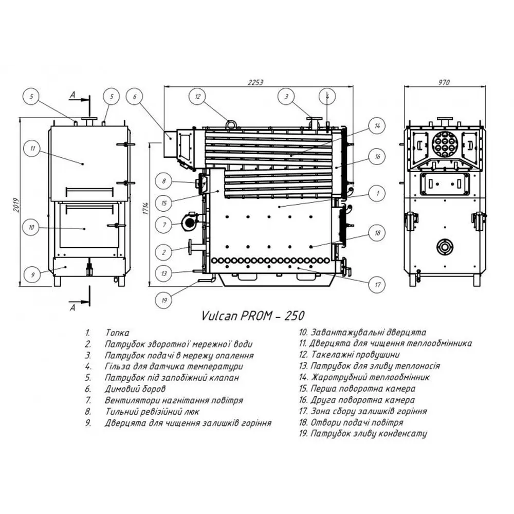 Твердопаливний котел Thermo Alliance Vulcan PROM 250 має високий ККД на дровах - понад 86%. Висока якість збірки і товщина сталі теплообмінника до 8 мм дозволяють котлу служити протягом тривалого терміну. Водонаповнена решітка збільшує площу теплообміну, підвищується ККД котла на 2-3% і знижуються витрати на паливо. У топці є канали подачі вторинного повітря, які покращують якість горіння, також підвищується ККД. За запитом користувача може бути переобладнаний під роботу з пелетним пальником.