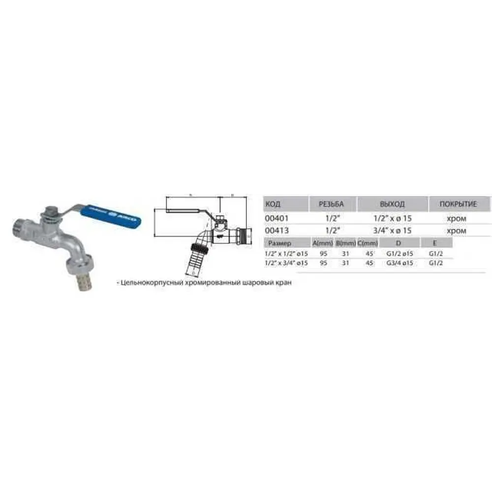 Кран кульовий поливальний 1/2 "ARCO 0413 призначений для застосування в садових системах та інших подібних установках. Являє собою цельнокорпусная кран, завдяки чому запобігають протікання і забезпечується більш висока механічна міцність в порівнянні з іншими кранами, що складається з двох частин.