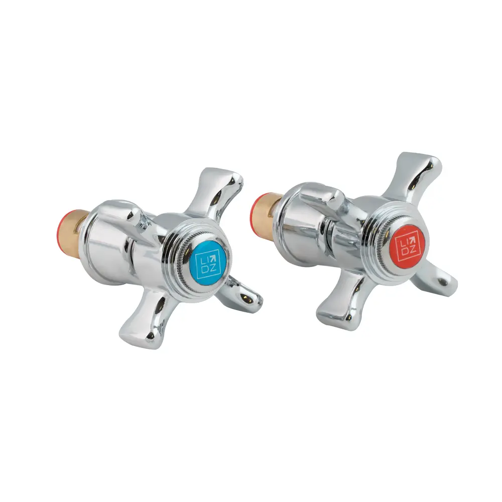 Пара кран-букс Lidz (CRM) 53 22 000 00 являє собою два хромованих вентиля з нанесеними маркуванням Х+Г води та фірмовими логотипами виробника. Вони виготовлені з високоякісної латуні, тому мають тривалий термін експлуатації і стануть відмінною заміною зламаних або неякісних. Використовуються як запірний механізм для відкриття / закриття і регулювання потоку води, яка подається з мережі. Для встановлення передбачено діаметр підключення 1/2".