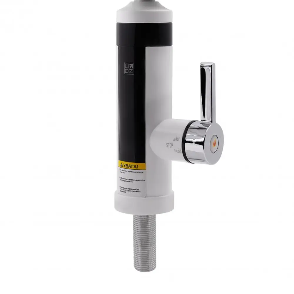 Проточний кран для кухні Lidz (CRW) 95 00 061 досить встановити замість змішувача і підключити до мережі електроживлення для того, щоб за кілька секунд нагріти воду до необхідної температури. Електричний водонагрівач підігріває воду за допомогою вбудованого терморегулятора. Напір і температура води, що подається регулюються за допомогою зручної вентильної ручки. Шланги підключення води не входять у комплектацію.