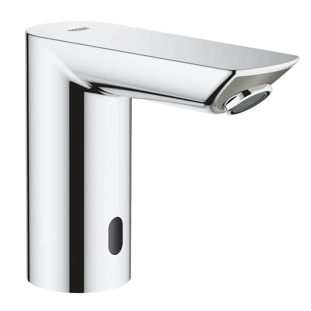 Кран безконтактний для раковини Grohe BauCosmopolitan E 36452000 для холодної або попередньо змішаної води, виготовлений з латуні. Глянцева хромована поверхня не тільки гарантує довговічність крану, але й надає оригінальний зовнішній вигляд. Управління відбувається за допомогою інфрачервоного давача руху. Підключення води відбувається через гнучкі шланги з діаметром підмикання 1/2", які є в комплекті. Має сучасний дизайн та зручний у використанні.