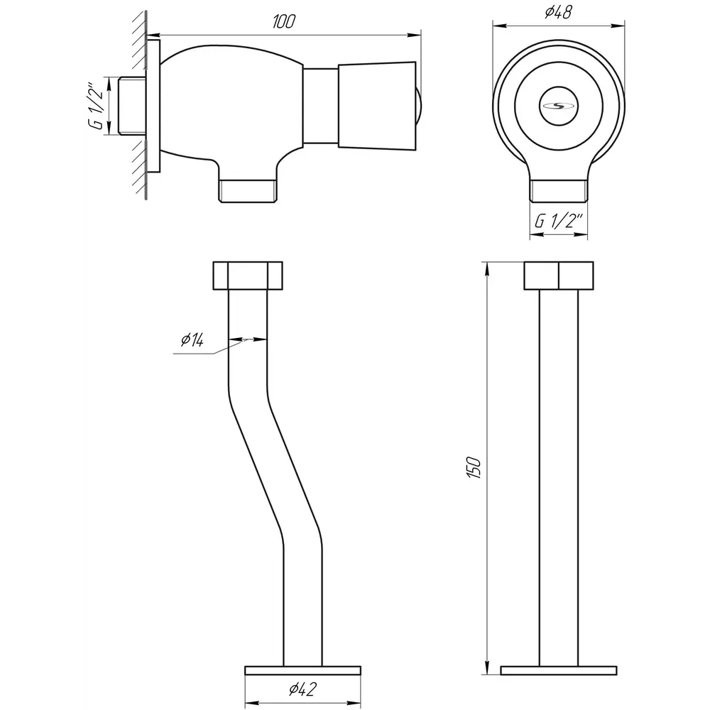 Комплект поставки: Кран, декоративна розетка, трубка з чашкою, гумовий ущільнювач